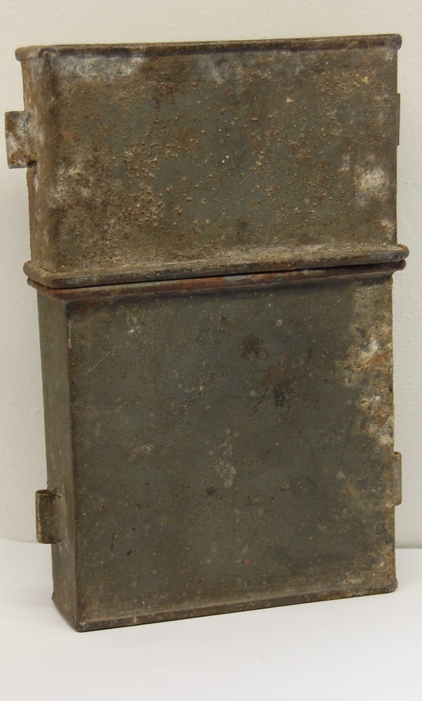 kamerpot, tinnen rond bol lichaaam met overstekende ...