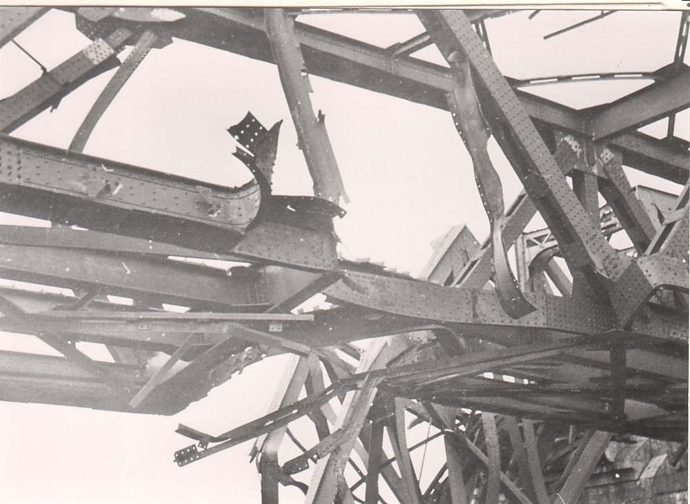 Oorlogsschade aan het station en spoor te Hedel.