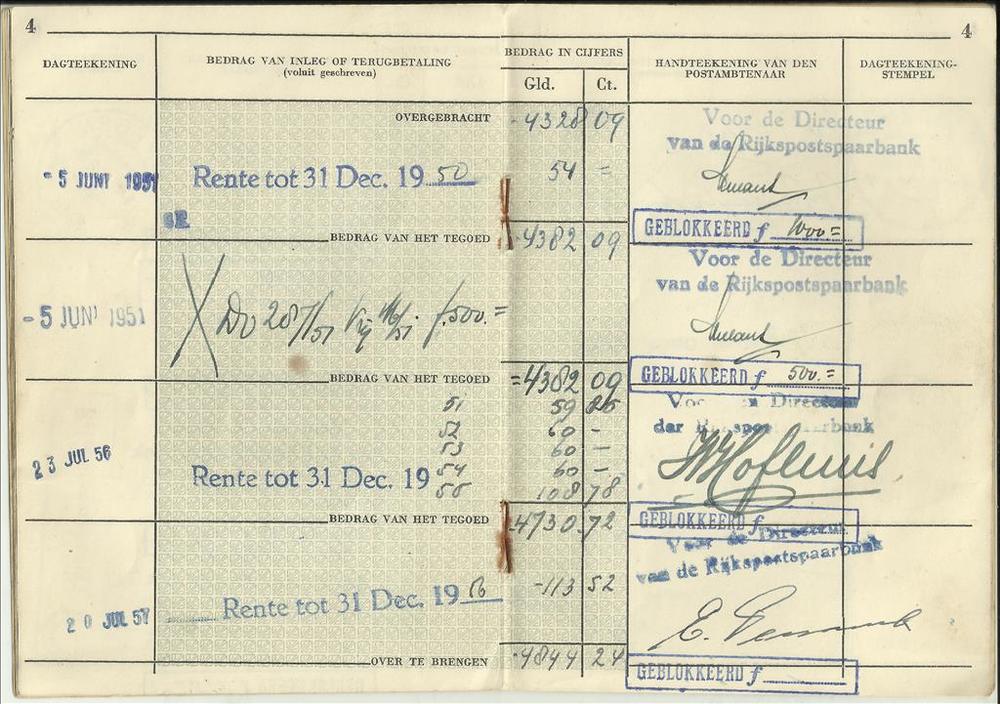 Nood-Spaarbankboekje Rijkspostspaarbank 1945 van T.H...