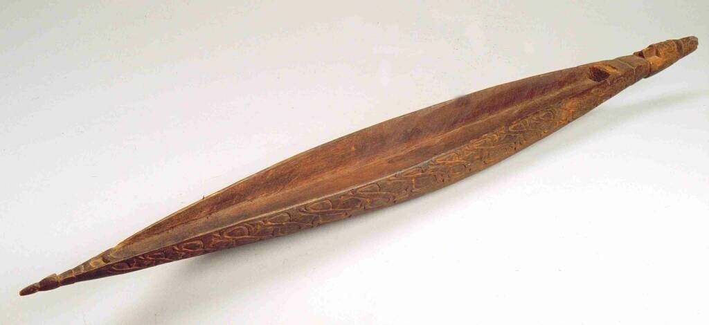 Ovalen, houten voedselbak met een lange steel