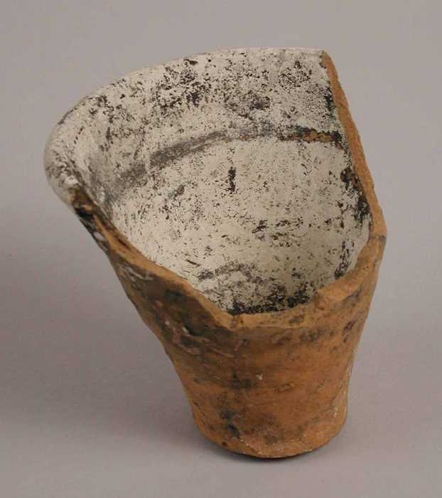 Halve aardewerk pot uit de loodwitindustrie, drie lo...