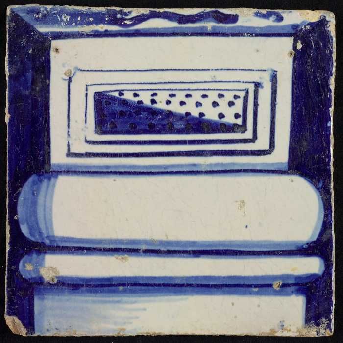 Tegel van schoorsteenpilaster, blauw op wit, deel va...
