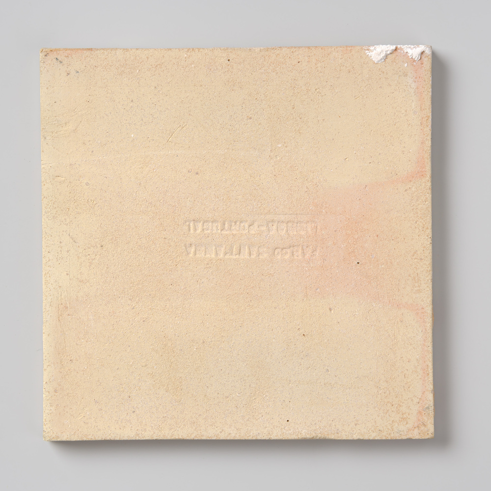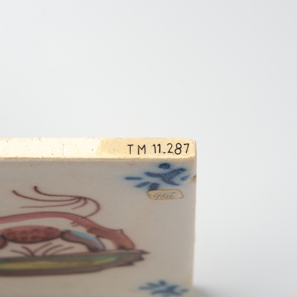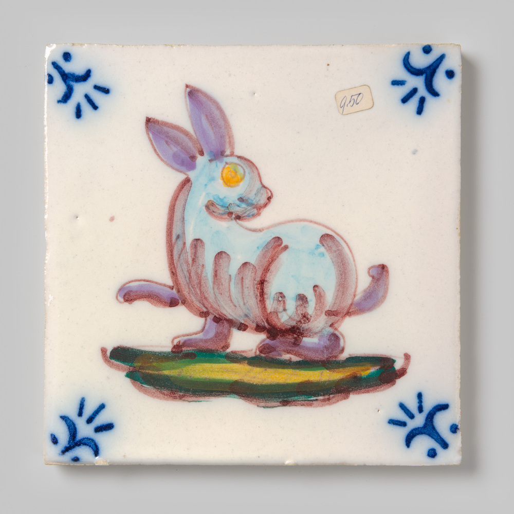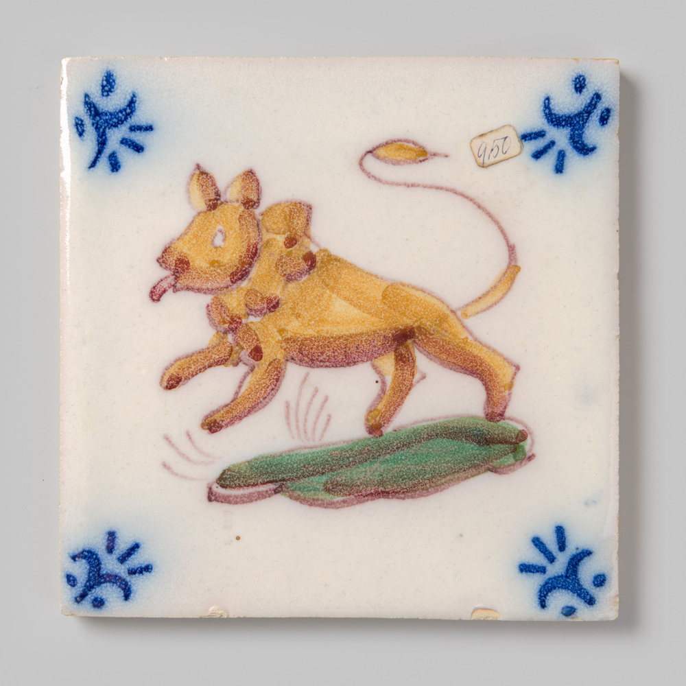 Tegel van keramiek met tinglazuur, voorstellende: le...