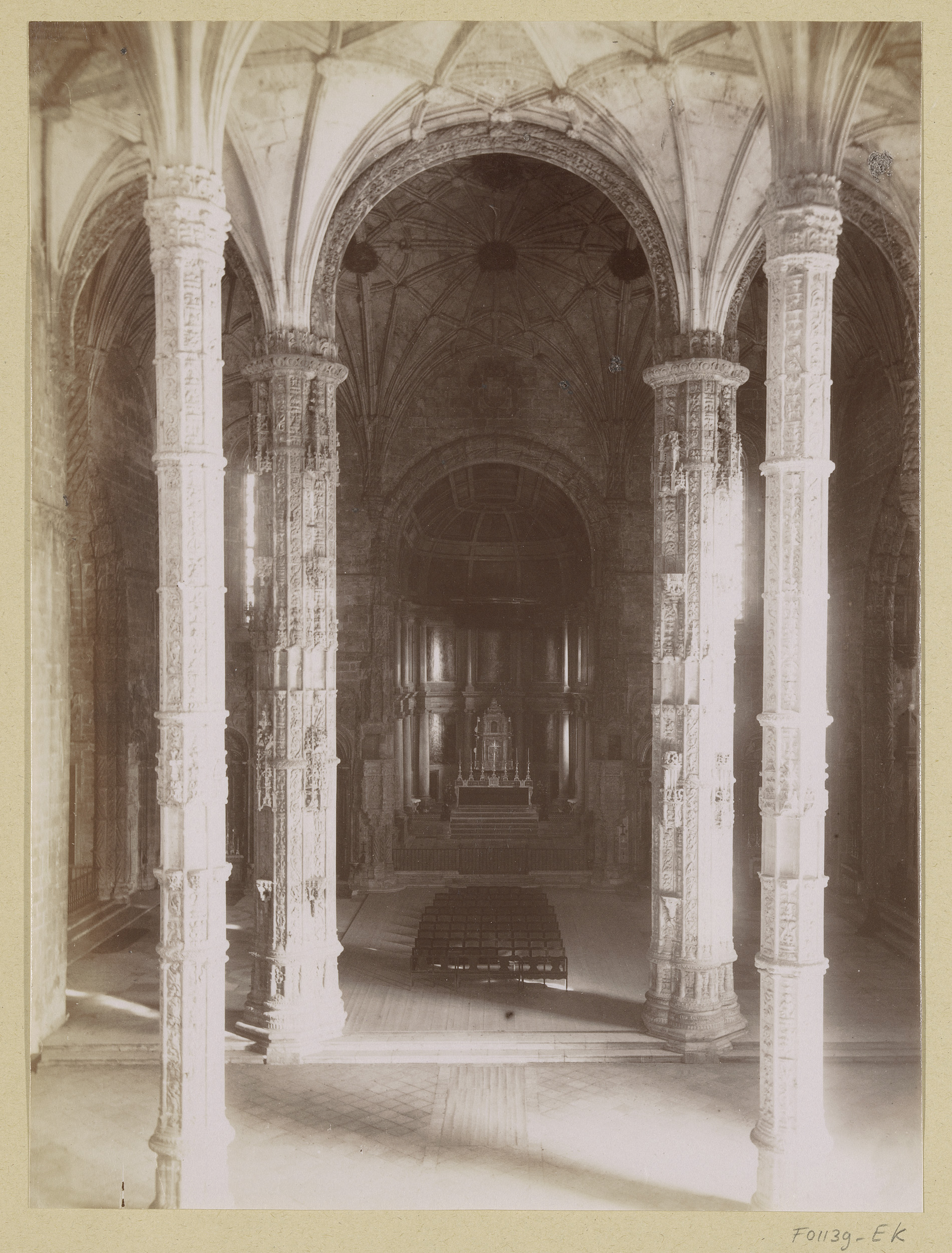 Gezicht op het interieur van het Mosteiro dos Jeróni...