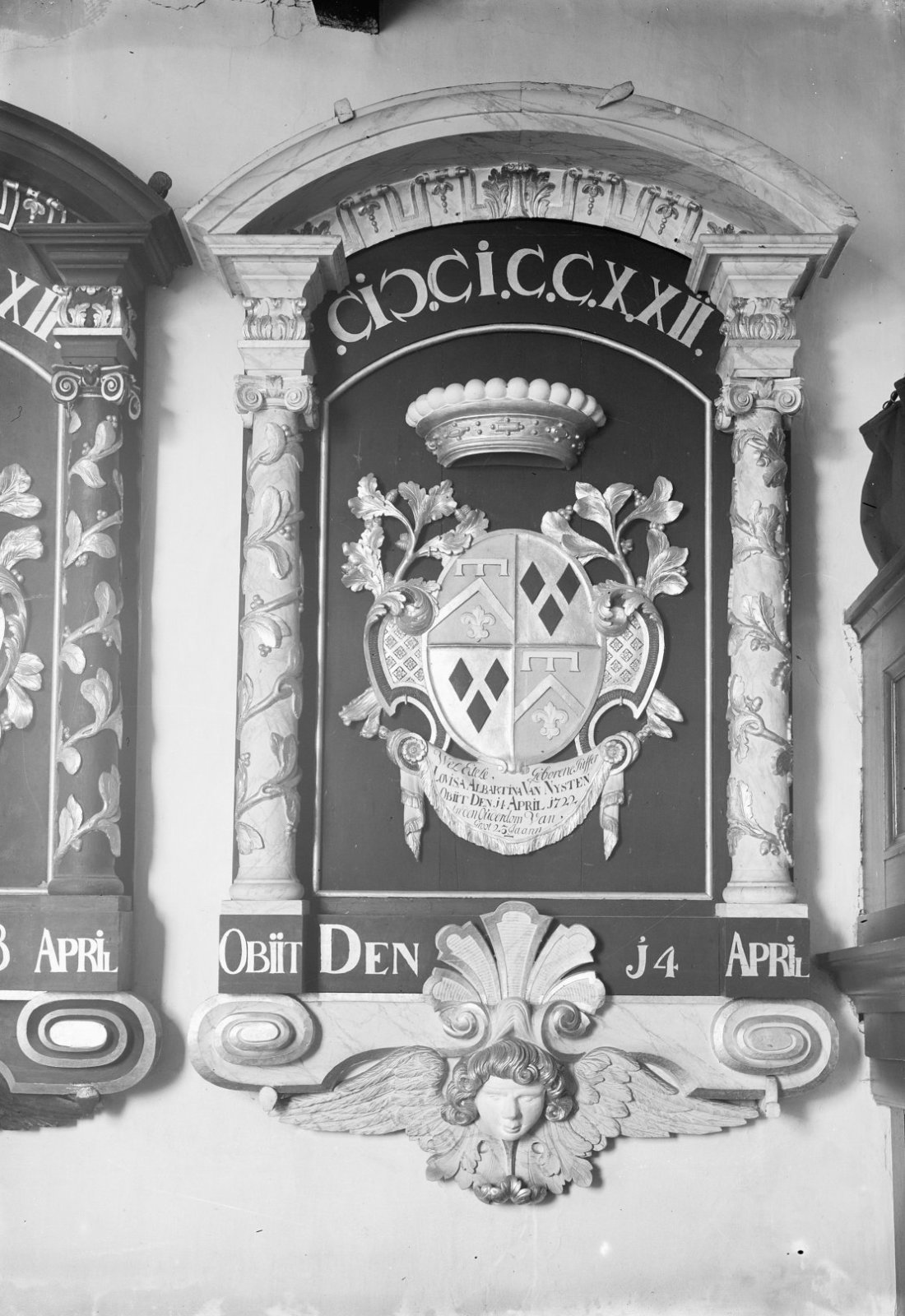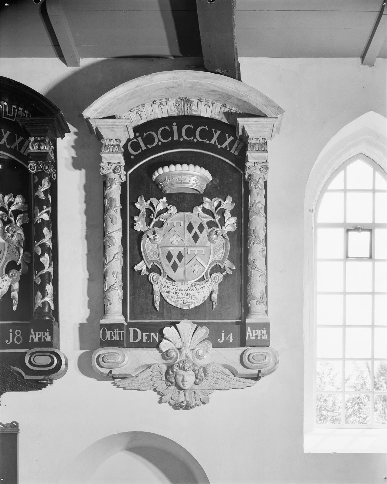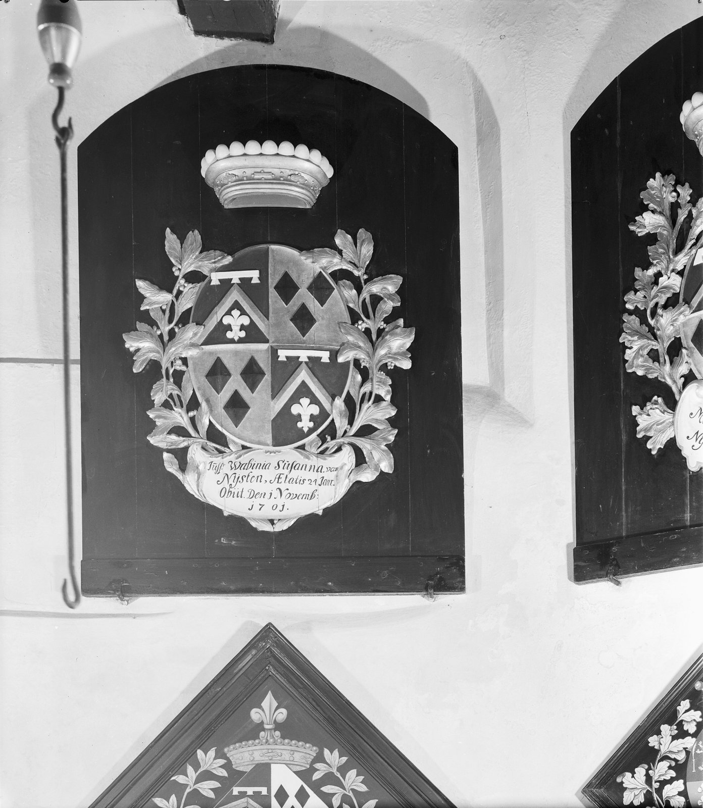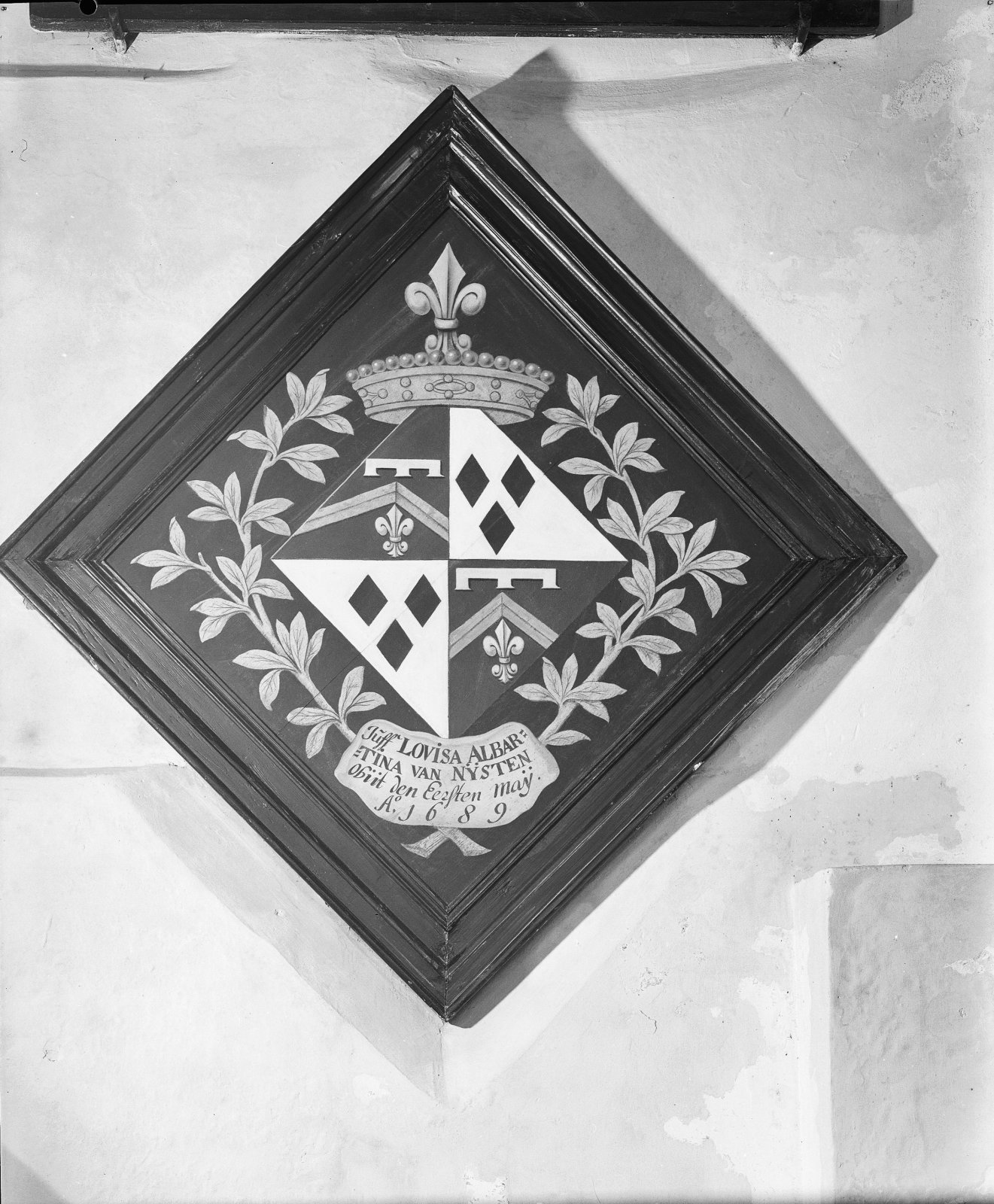 Rouwbord van Laes van Burmania, mogelijk uit de kerk...