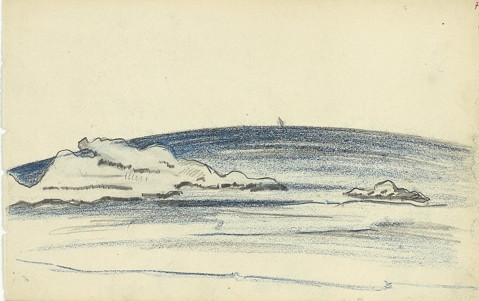 Zee met boot aan de horizon