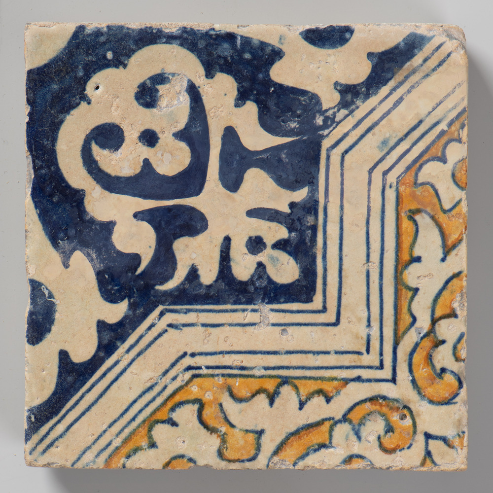 tegel van keramiek met tinglazuur, voorstellende: or...
