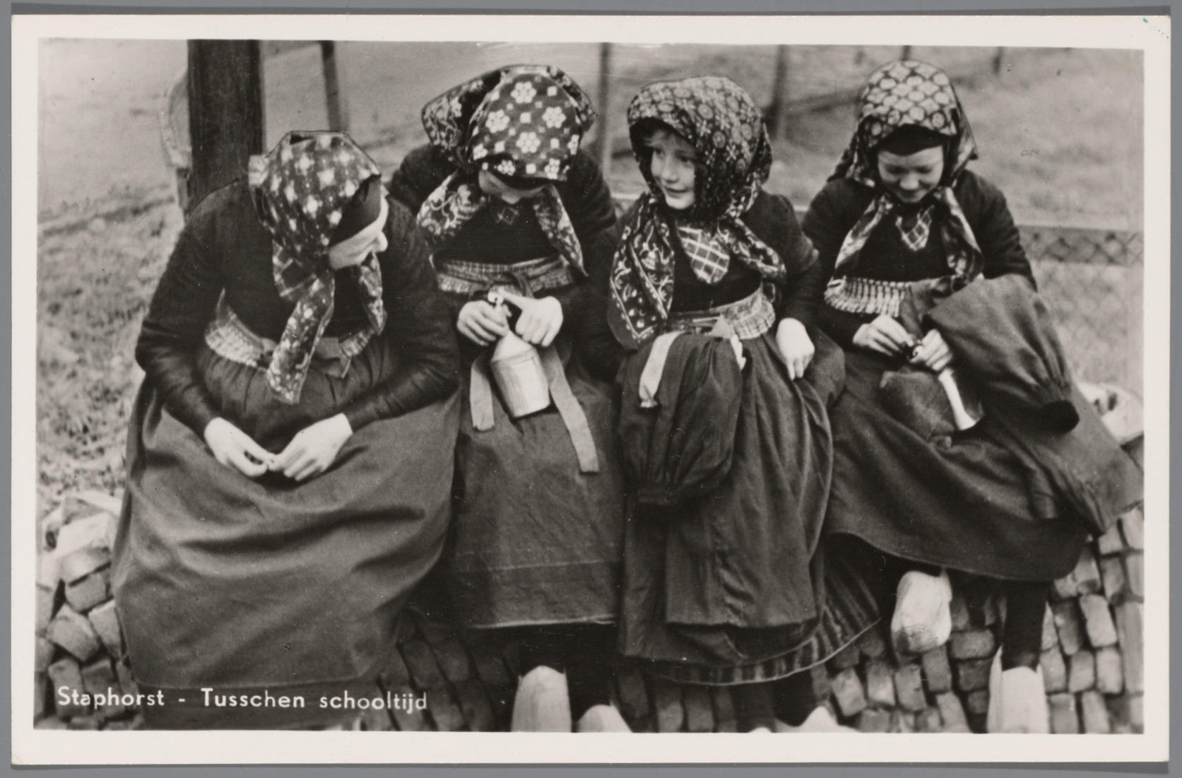 Vier meisjes in Staphorster streekdracht, 1937–1938