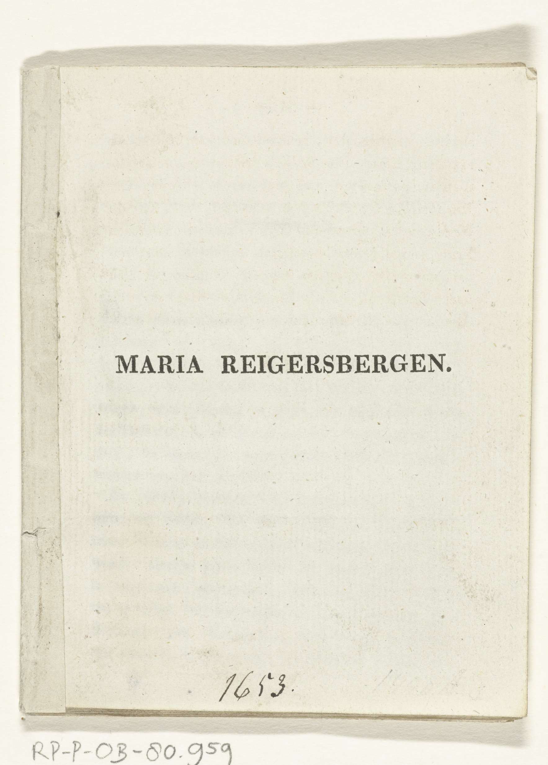Boekje over Maria van Reigersberch
