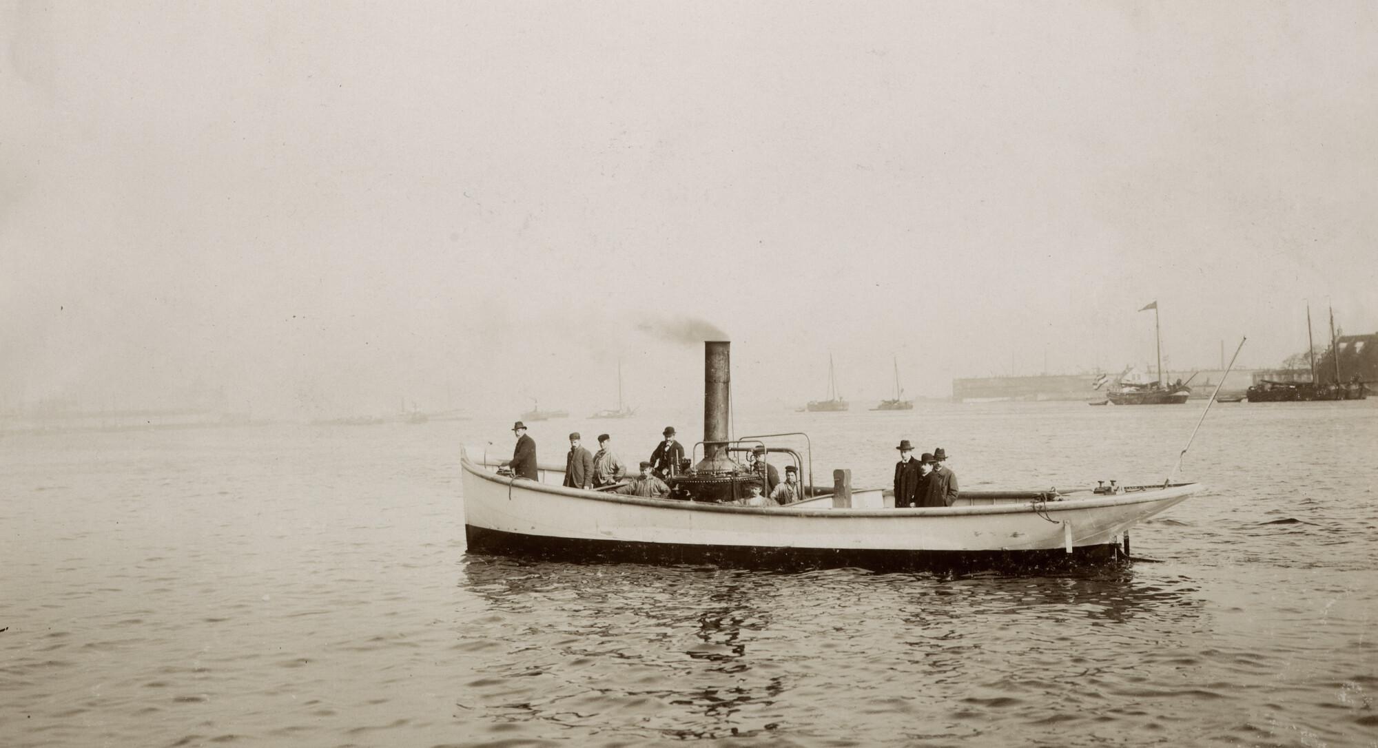 Stoomsloep van 8.50 meter op 't IJ bij het Petroleum...