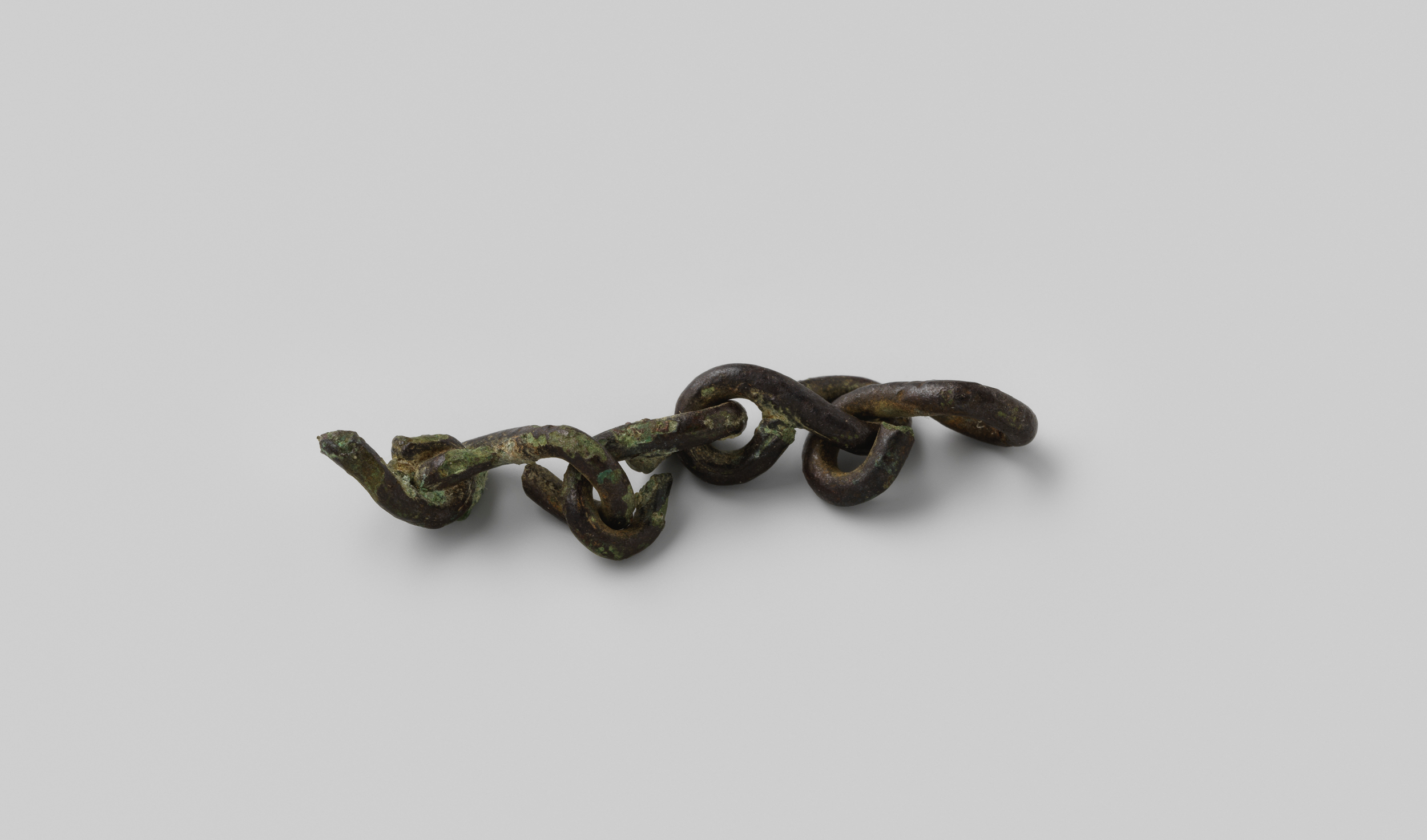 Schakel van een ketting uit het wrak van de Oost-Ind...