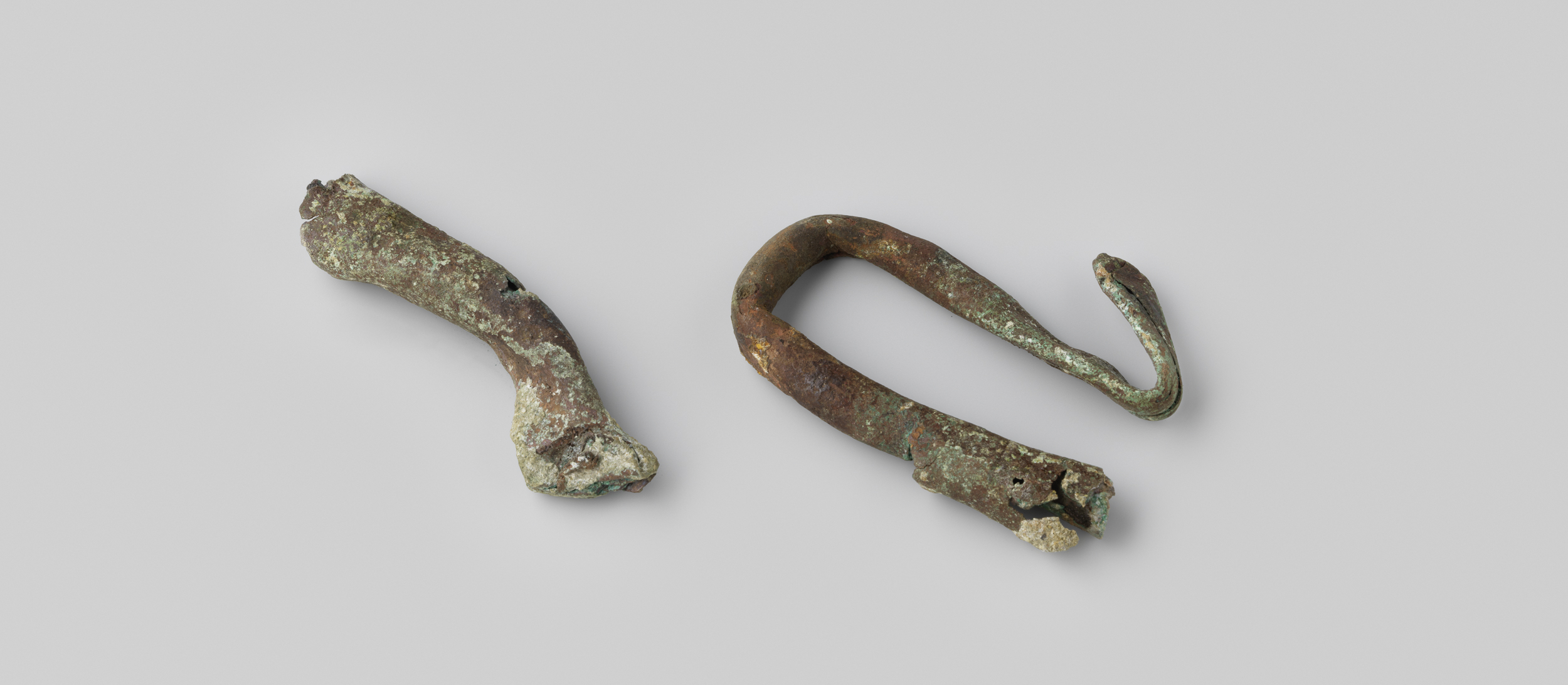 Fragmenten koperen plaatwerk uit het wrak van de Oos...