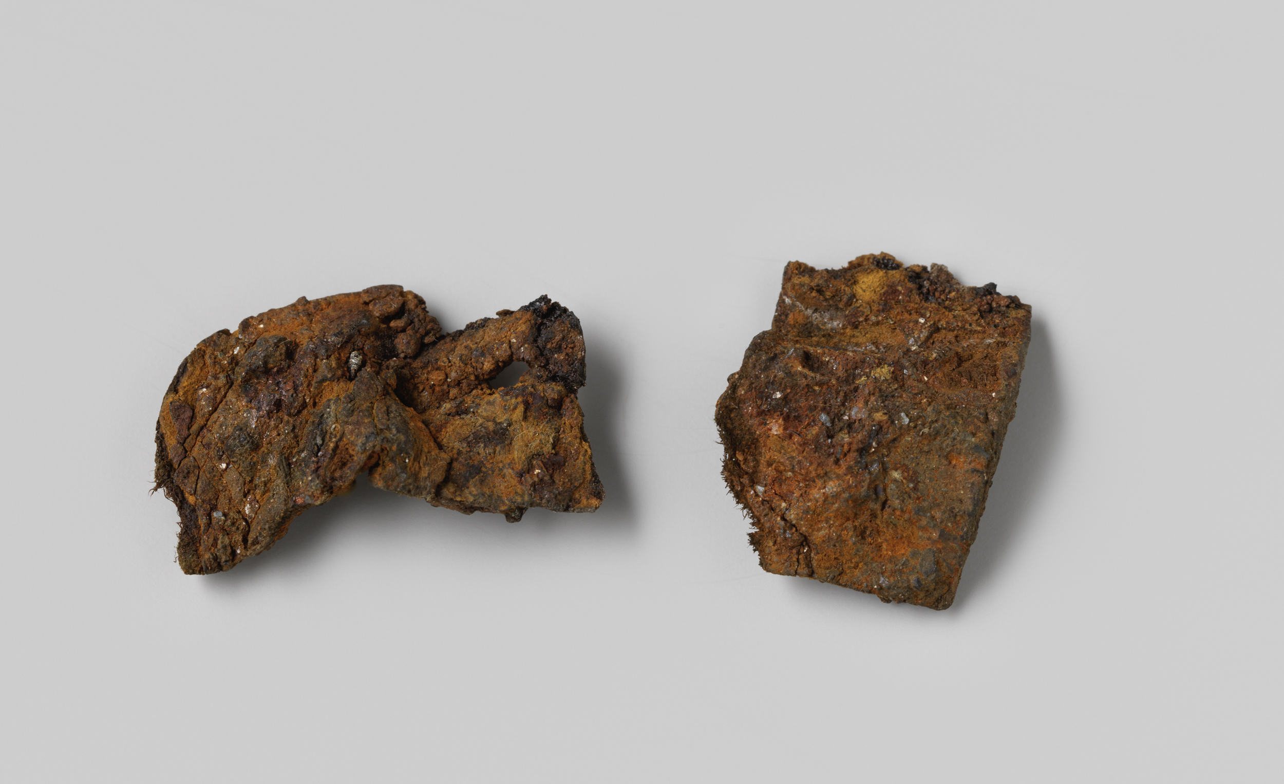 Fragmenten van ijzer uit het wrak van de Oost-Indiëv...