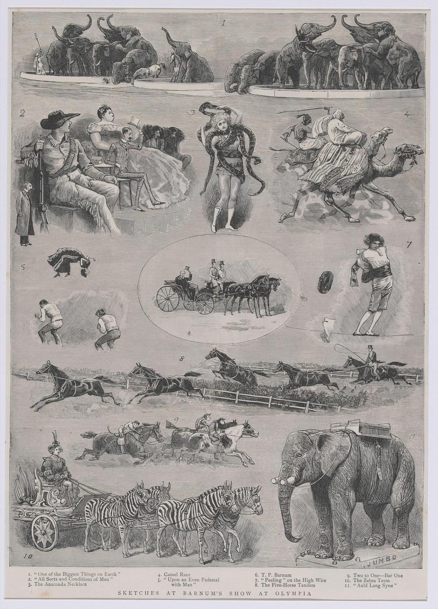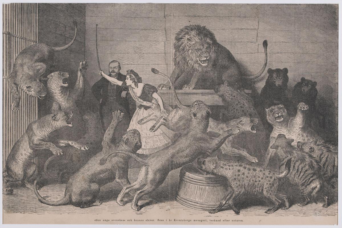 Dressuur van paarden, olifanten, zebra's; en acrobaten