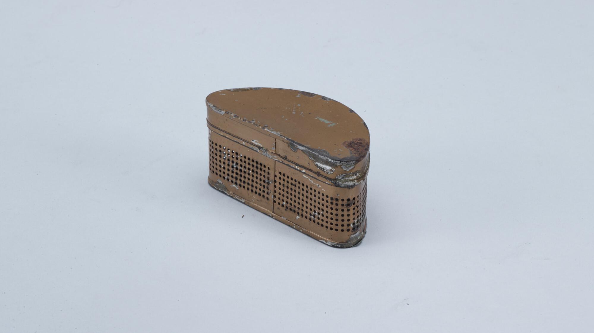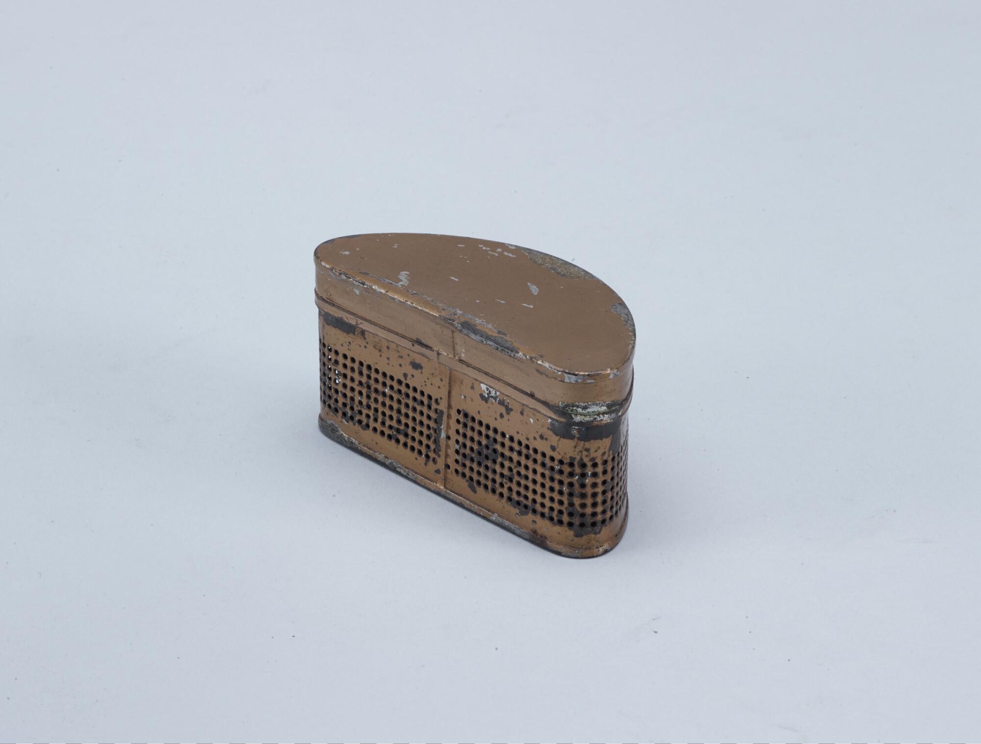 Metalen doosje voor longbeschermer met het etikel va...