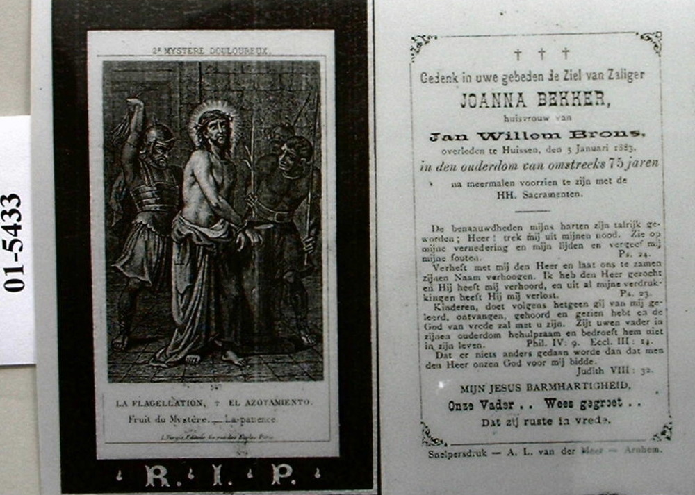 Bidprentje op foto van Johannes Wilhelmus Brons en z...