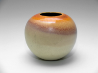 Vaas, model F159, crème met oranje en paars