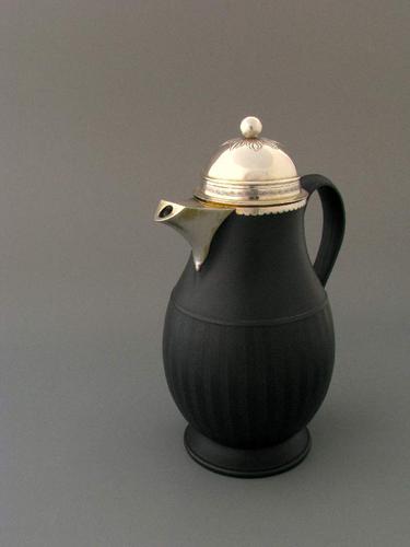 Koffiekan met verzilverd montuur, Wedgwood 'Black ba...