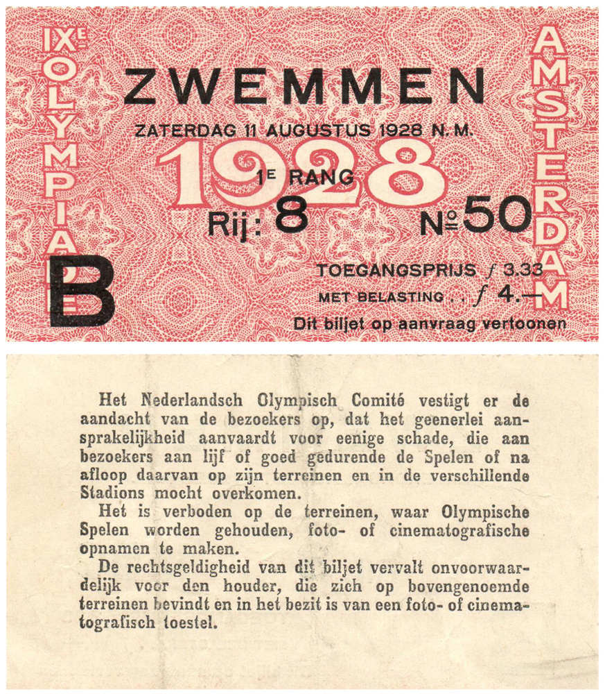 Olympisch toegangsbewijs voor zwemmen 11 augustus 19...