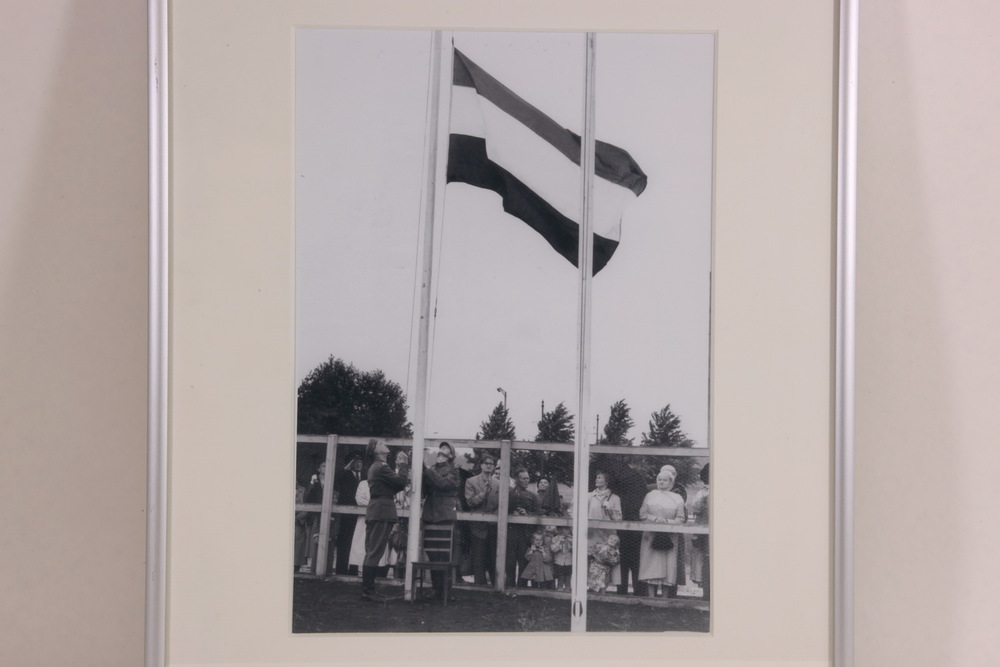 Een zwart-wit foto van twee soldaten die de Nederlan...