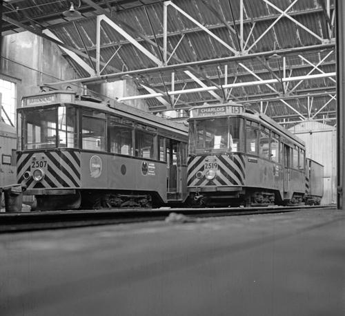 Rotterdam, tramremise Charlois, met RET haspelwagen