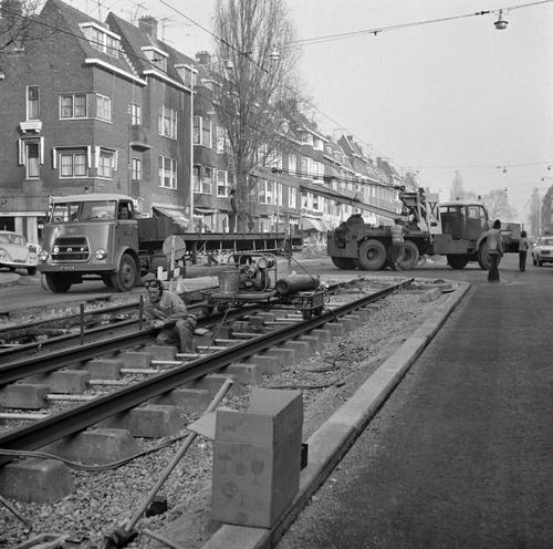 Rotterdam, Schiedamseweg, werkzaamheden aan het spoor