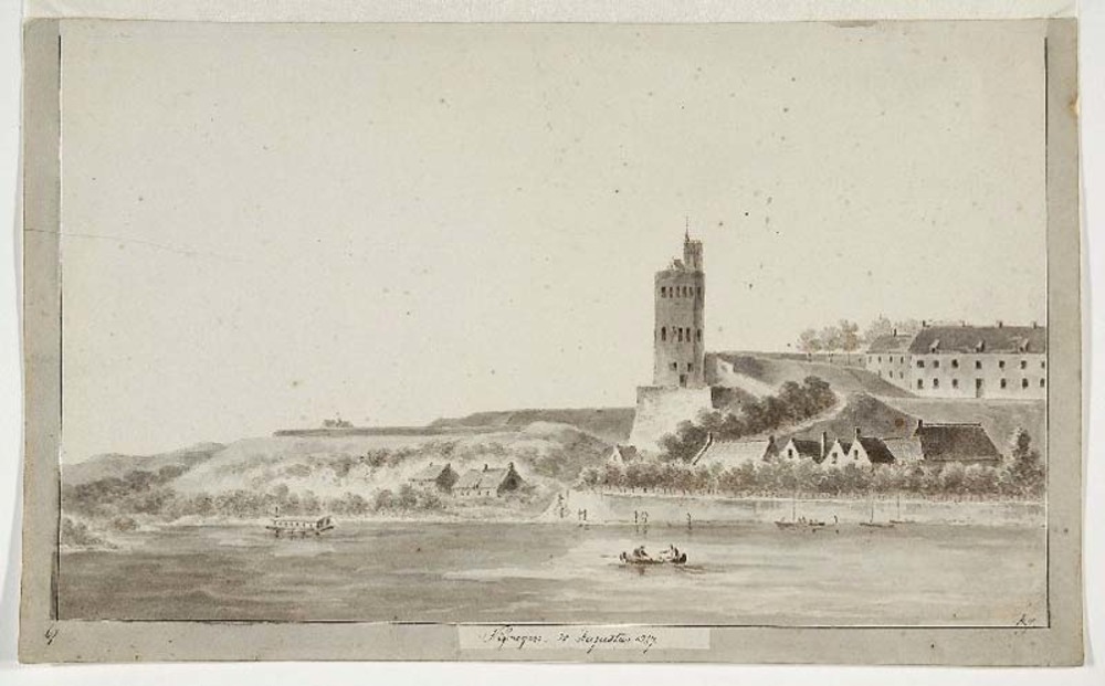 Gezicht vanaf het Valkhof op de Steenstraat, de Waal...
