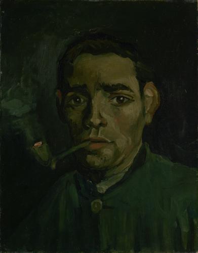 Zelfportret met strohoed en pijp