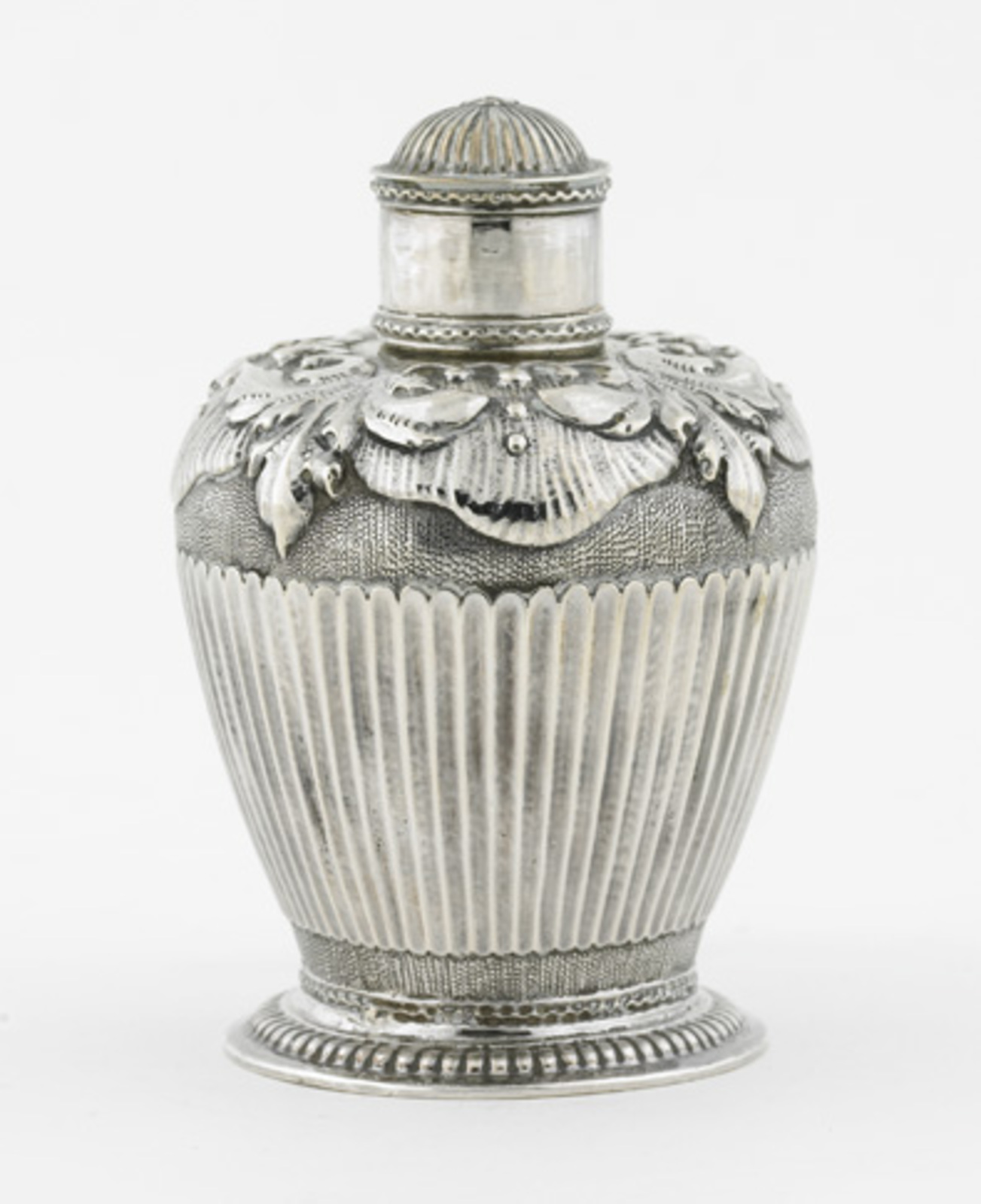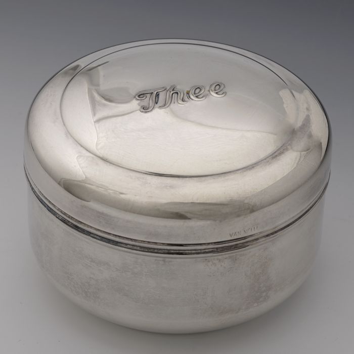 Zilveren theebus (A) met deksel (B) van Van Nelle