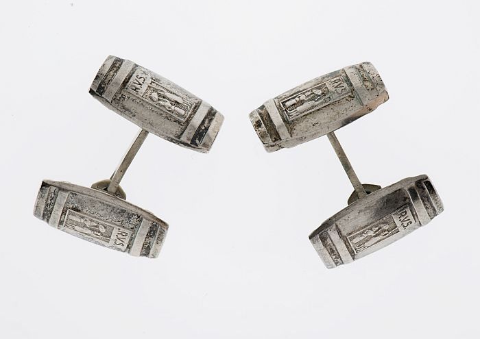 Twee manchetknopen: zilveren RVS tonnetjes