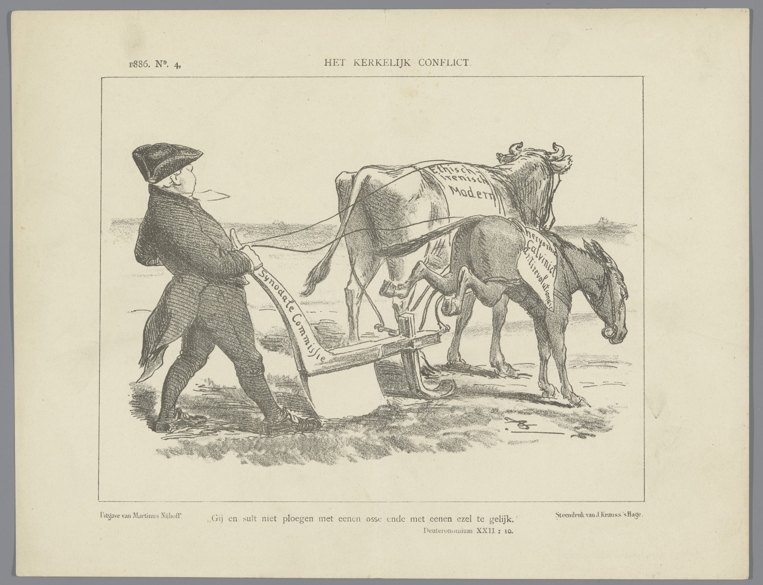 Spotprent over een kerkelijk conflict, 1886