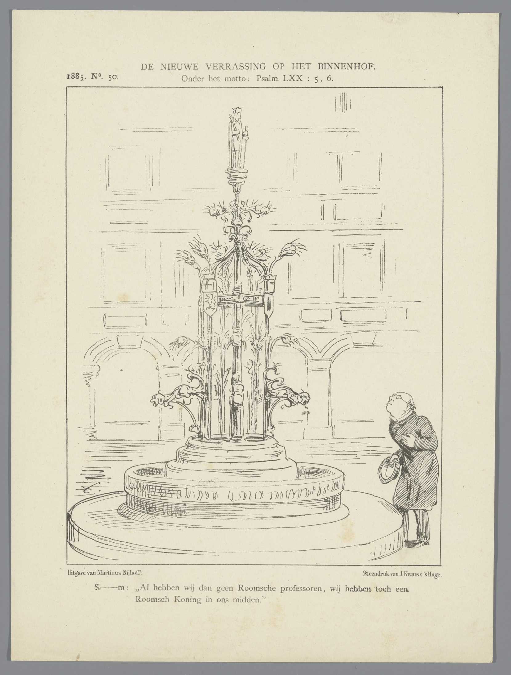 Spotprent bij de plaatsing van het Binnenhoffontein,...