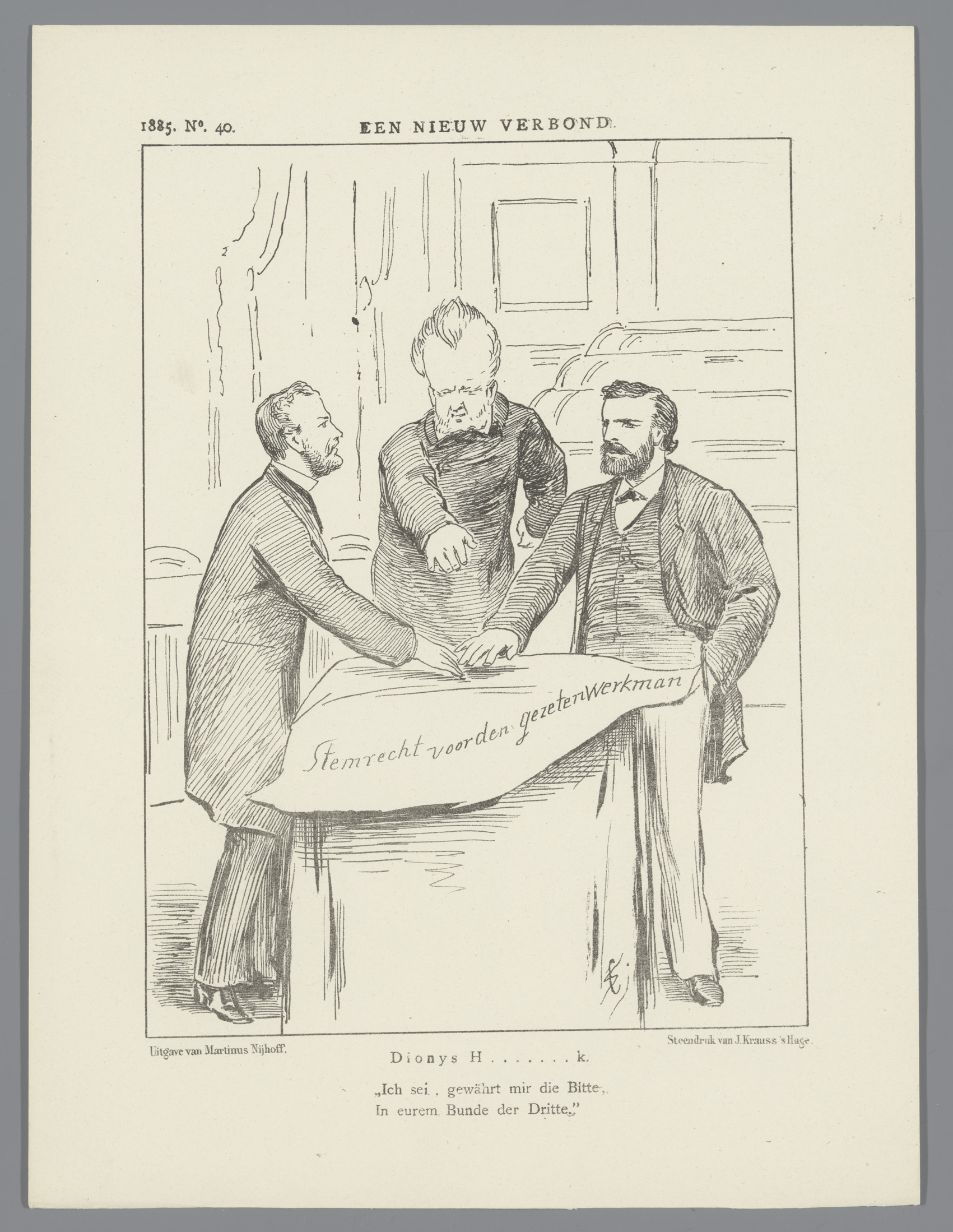 Spotprent over stemrecht, 1885