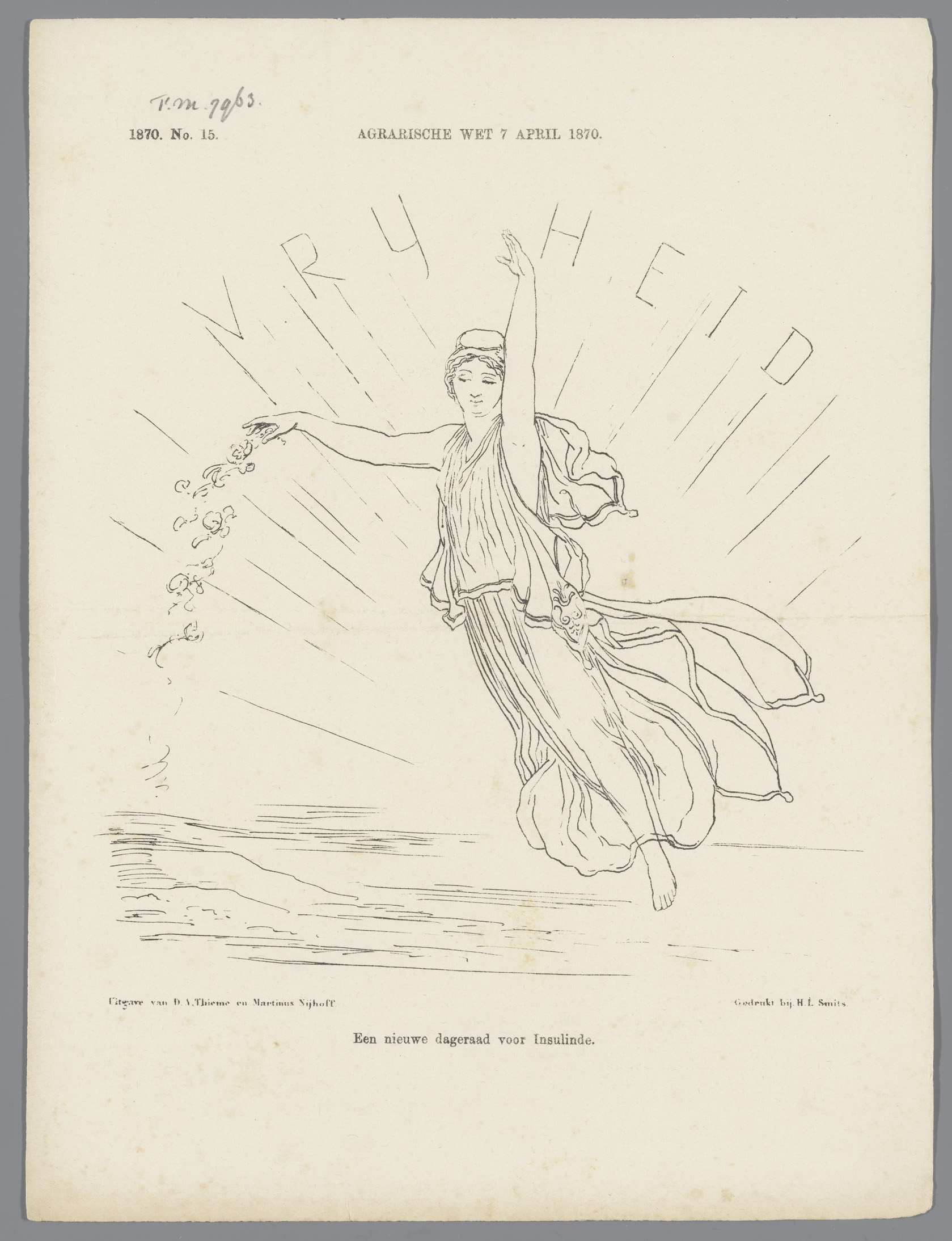 Spotprent over de aanneming van de Agrarische wet, 1870