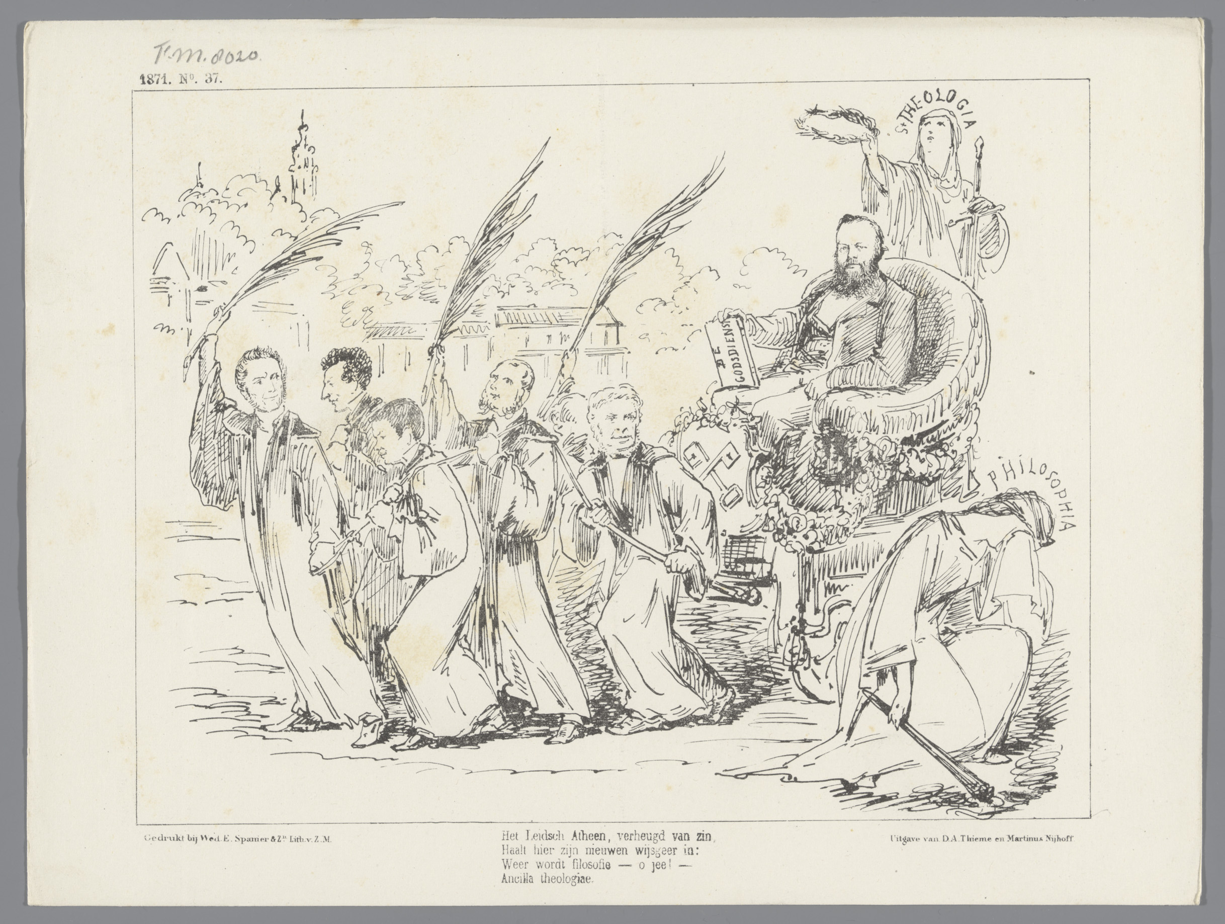Spotprent over Thorbecke en het lager onderwijs, 1871