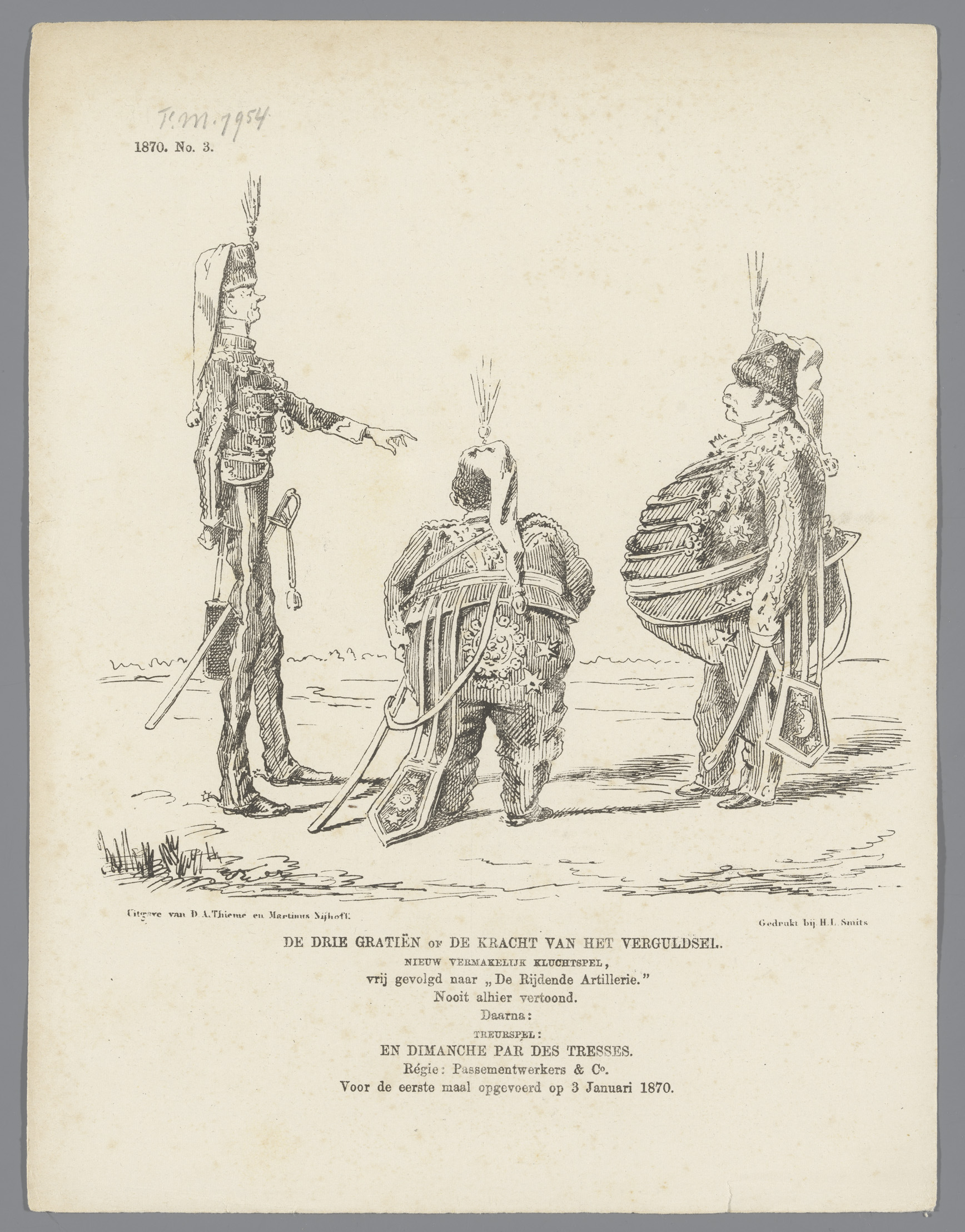 Spotprent op de vrijwilligerkorpsen in Nederland, 1870