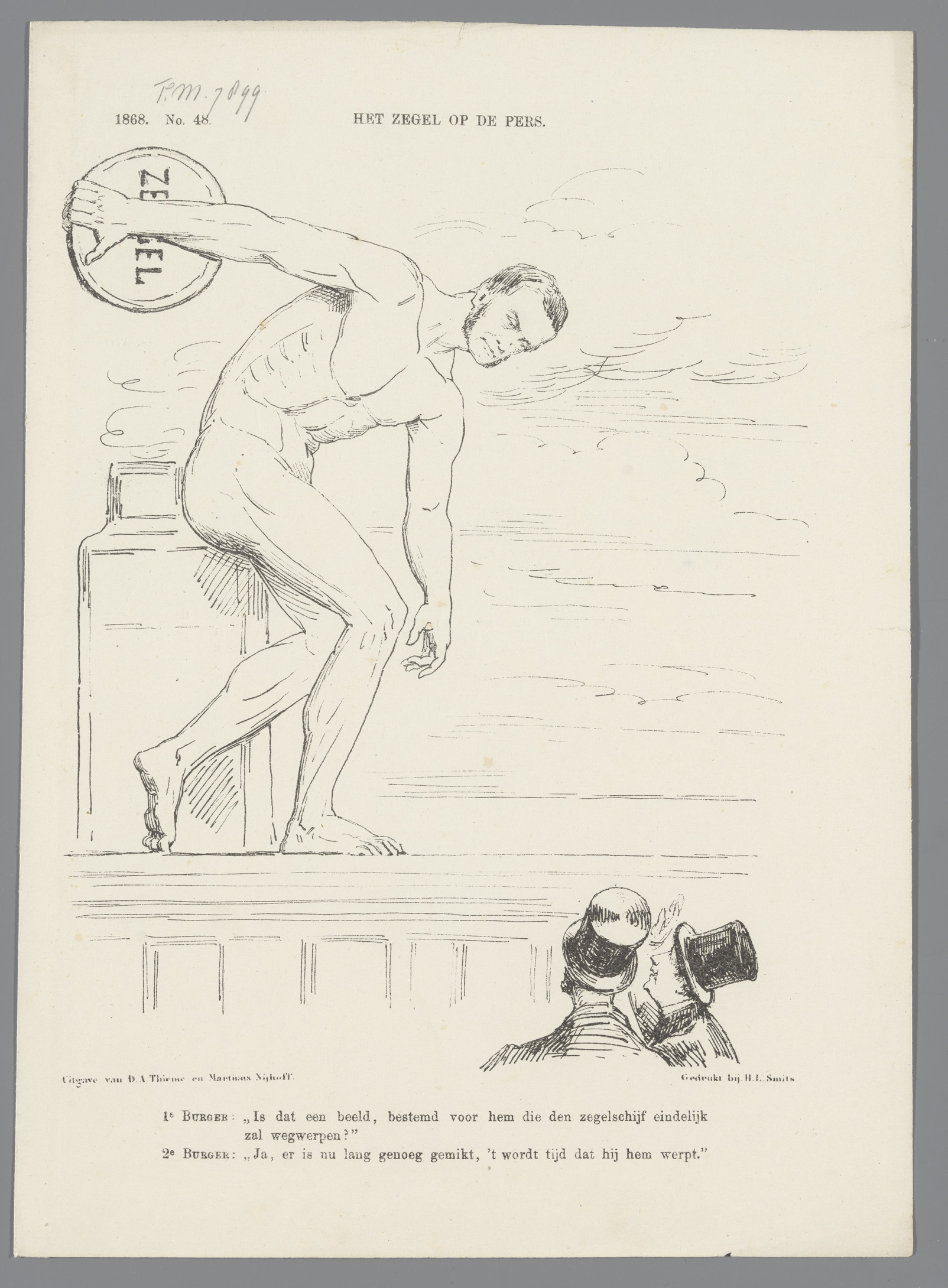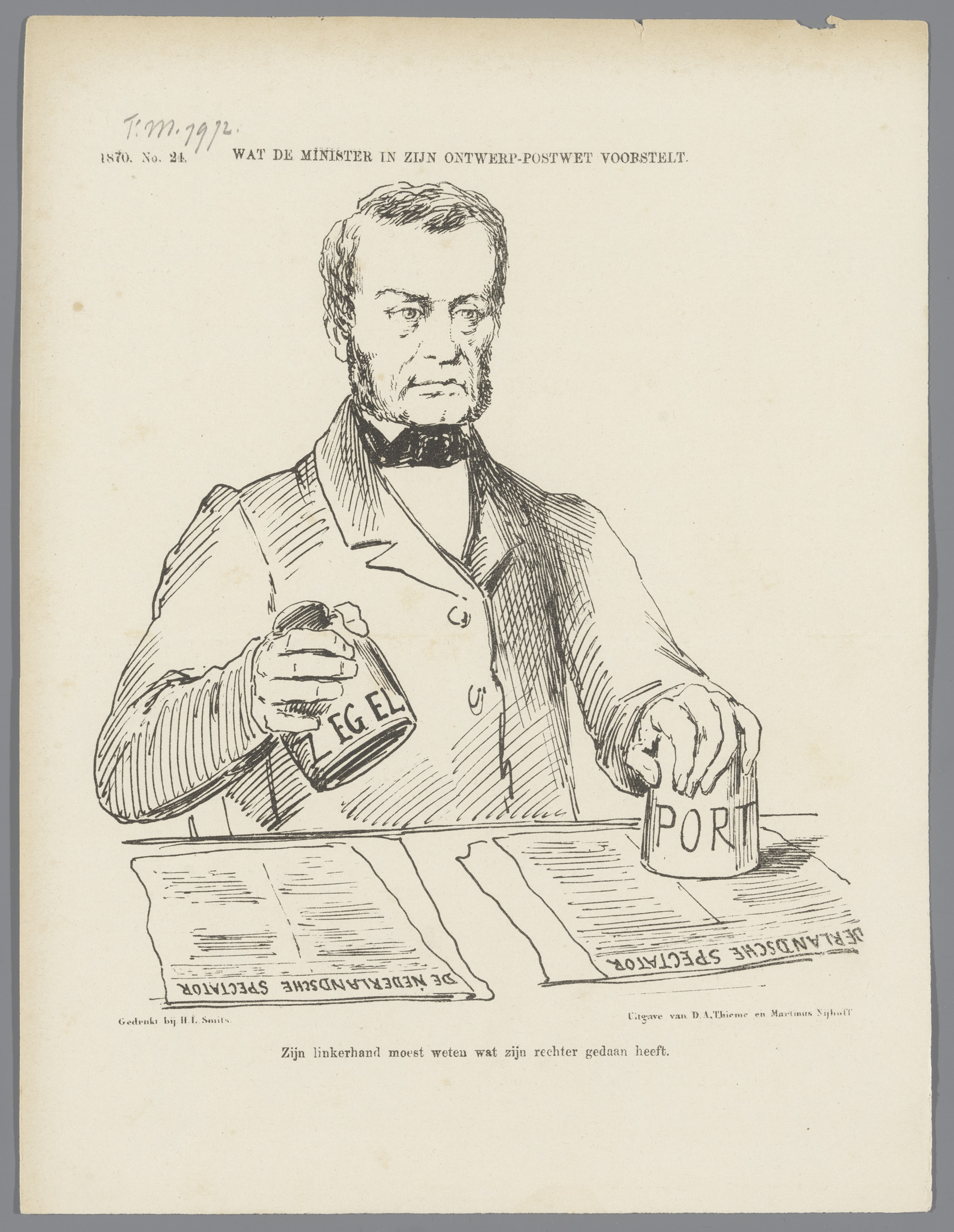 Spotprent op Minister Van Bosse en het dagbladzegel,...
