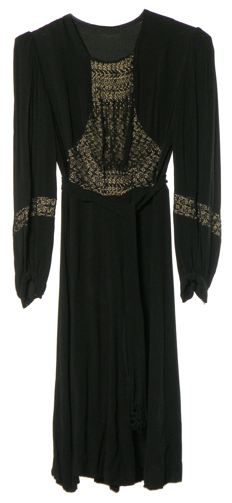 Lange, zwarte damesmantel van crêpe georgette