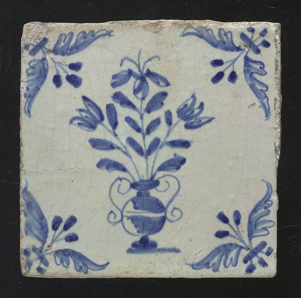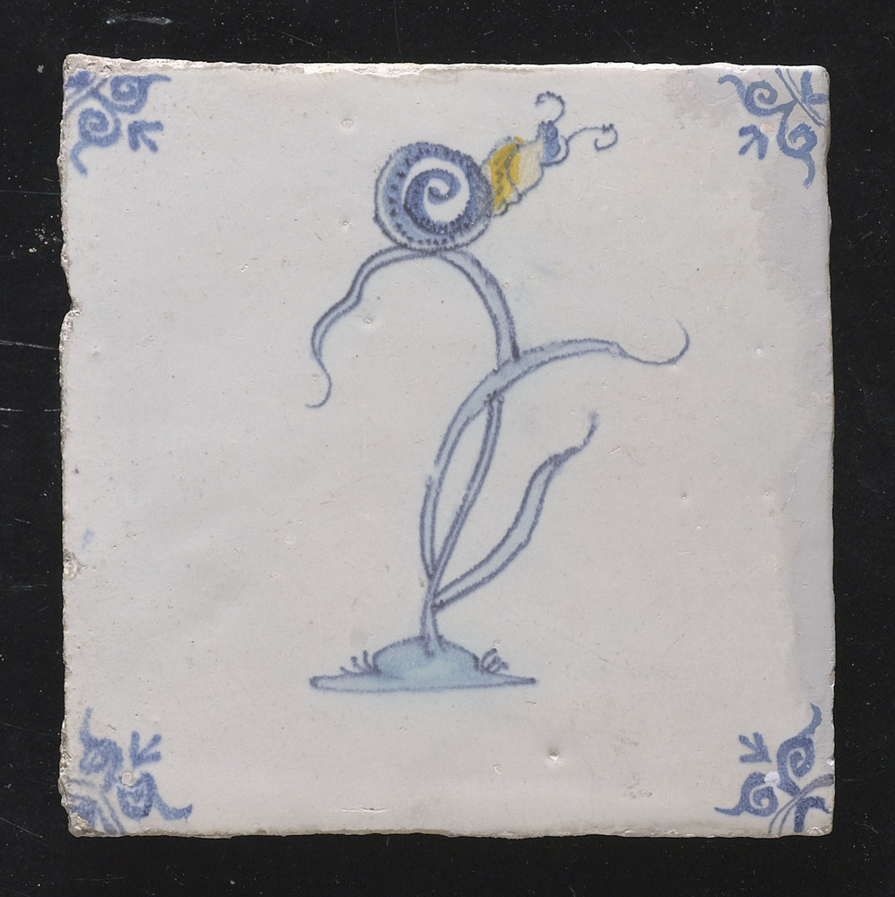 Tegel van keramiek, tinglazuur, voorstellende een bl...