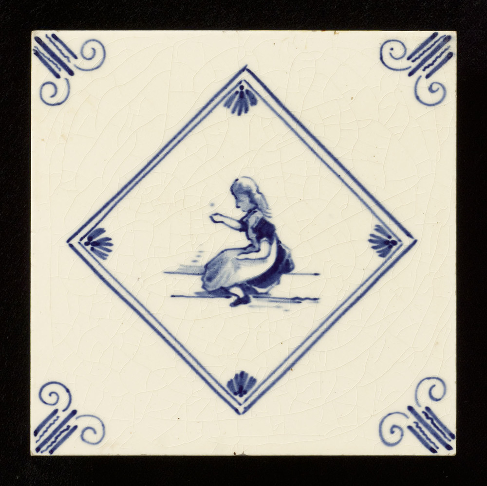 tegel van keramiek in onderglazuur, voorstellende: k...