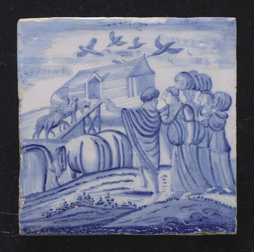 Tegel van keramiek, tinglazuur, voorstellende: De di...