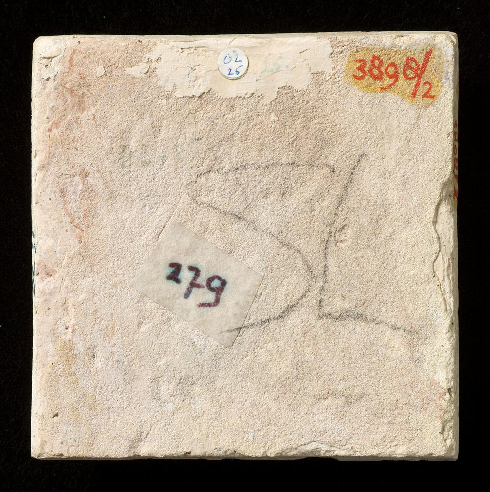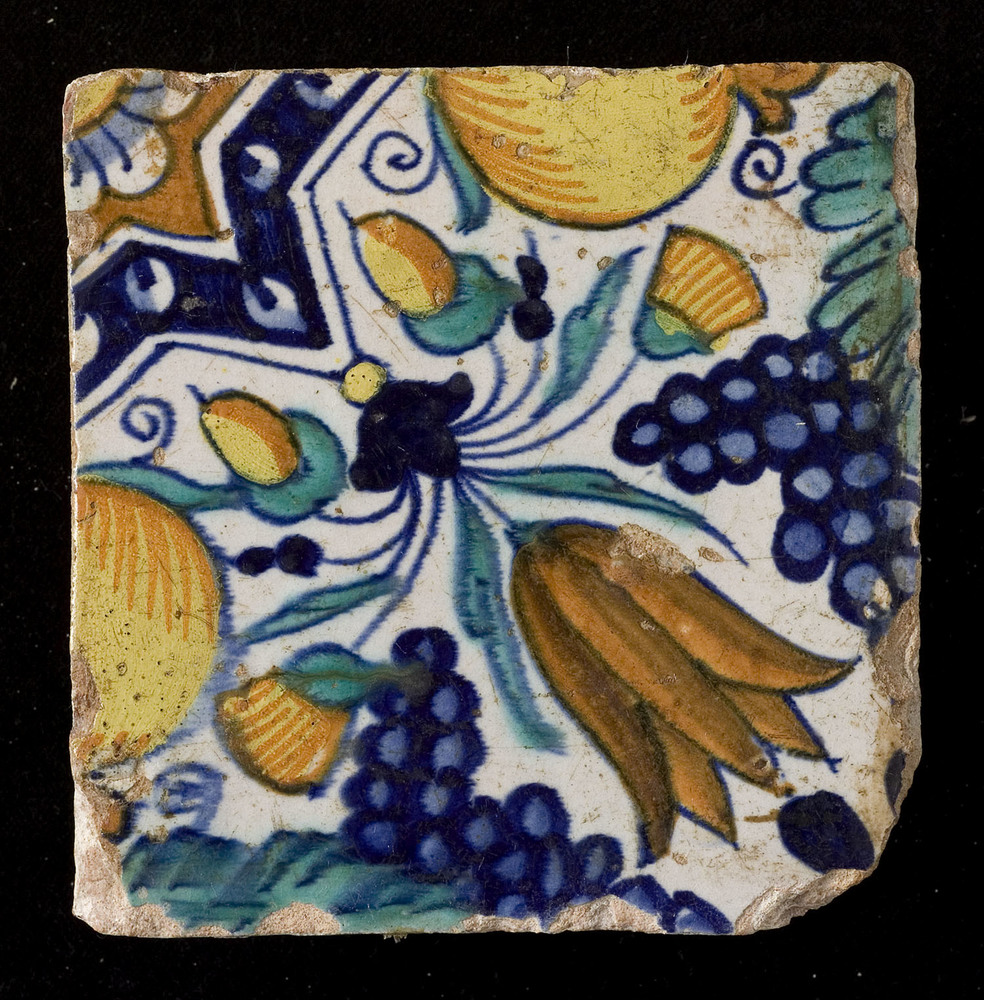 Tegel van keramiek met tinglazuur, voorstellende: or...
