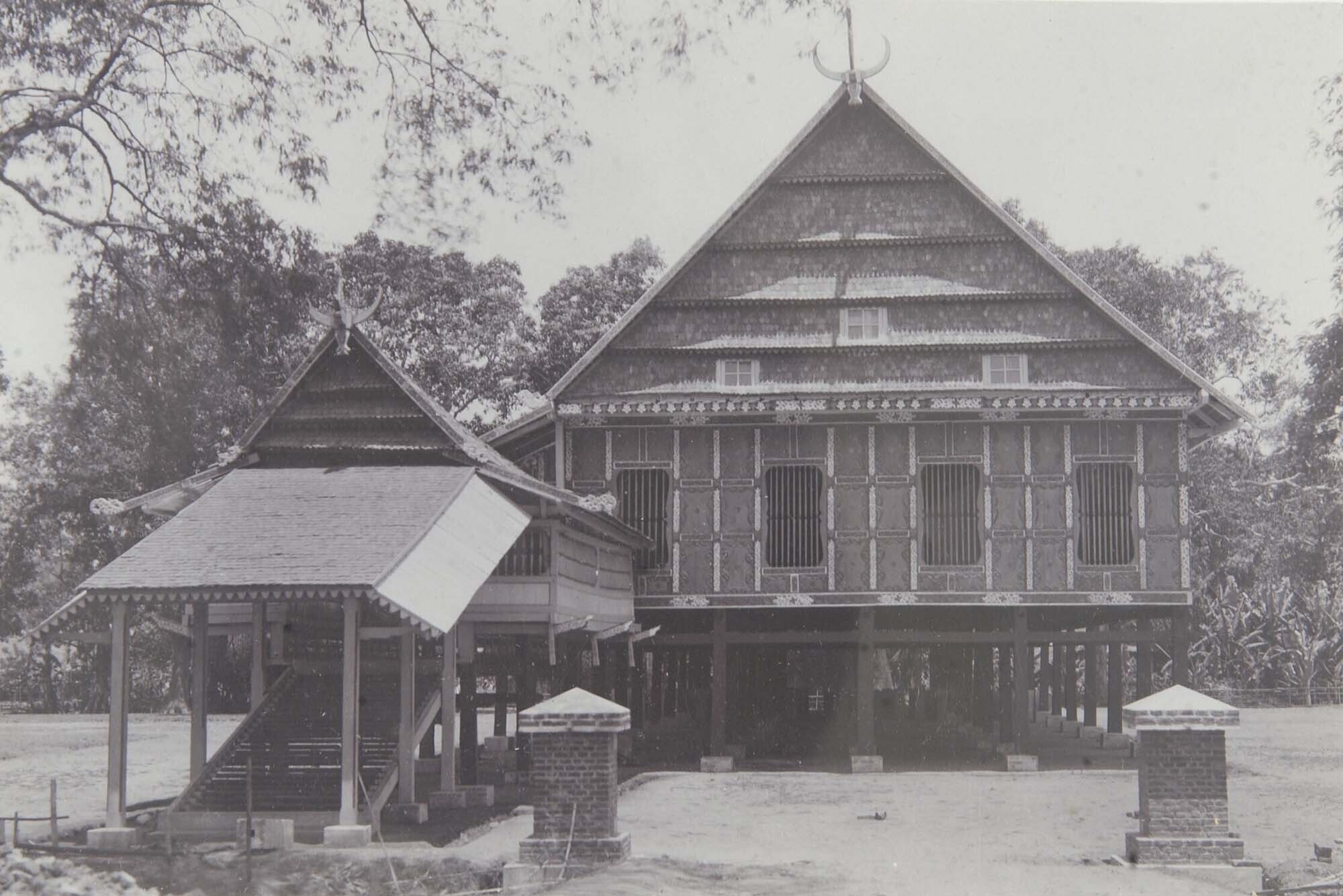'Vooraanzicht van het huis van de Bapa raja van Soya...