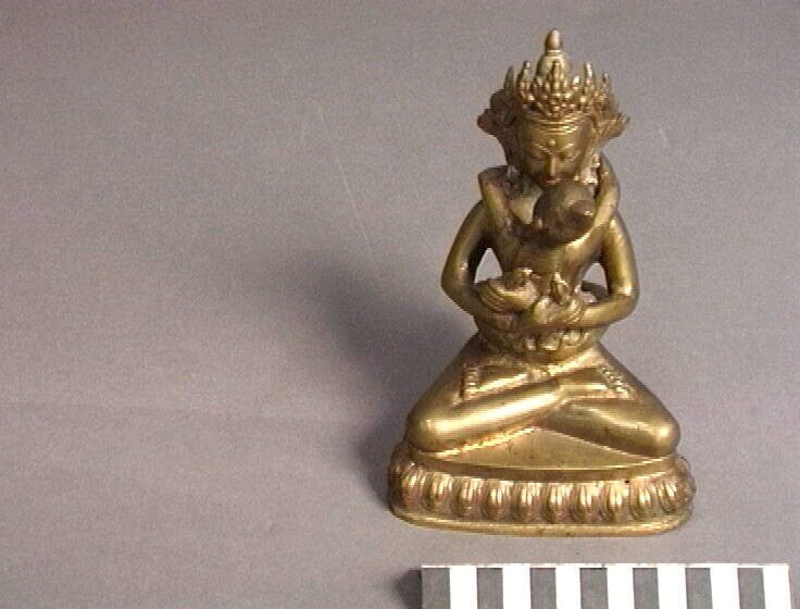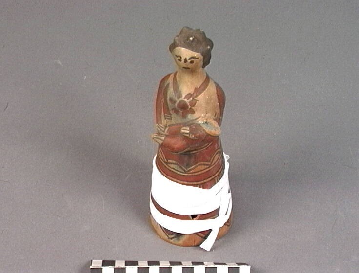Vrouwelijke figuur met vermoedelijk een kind op de arm