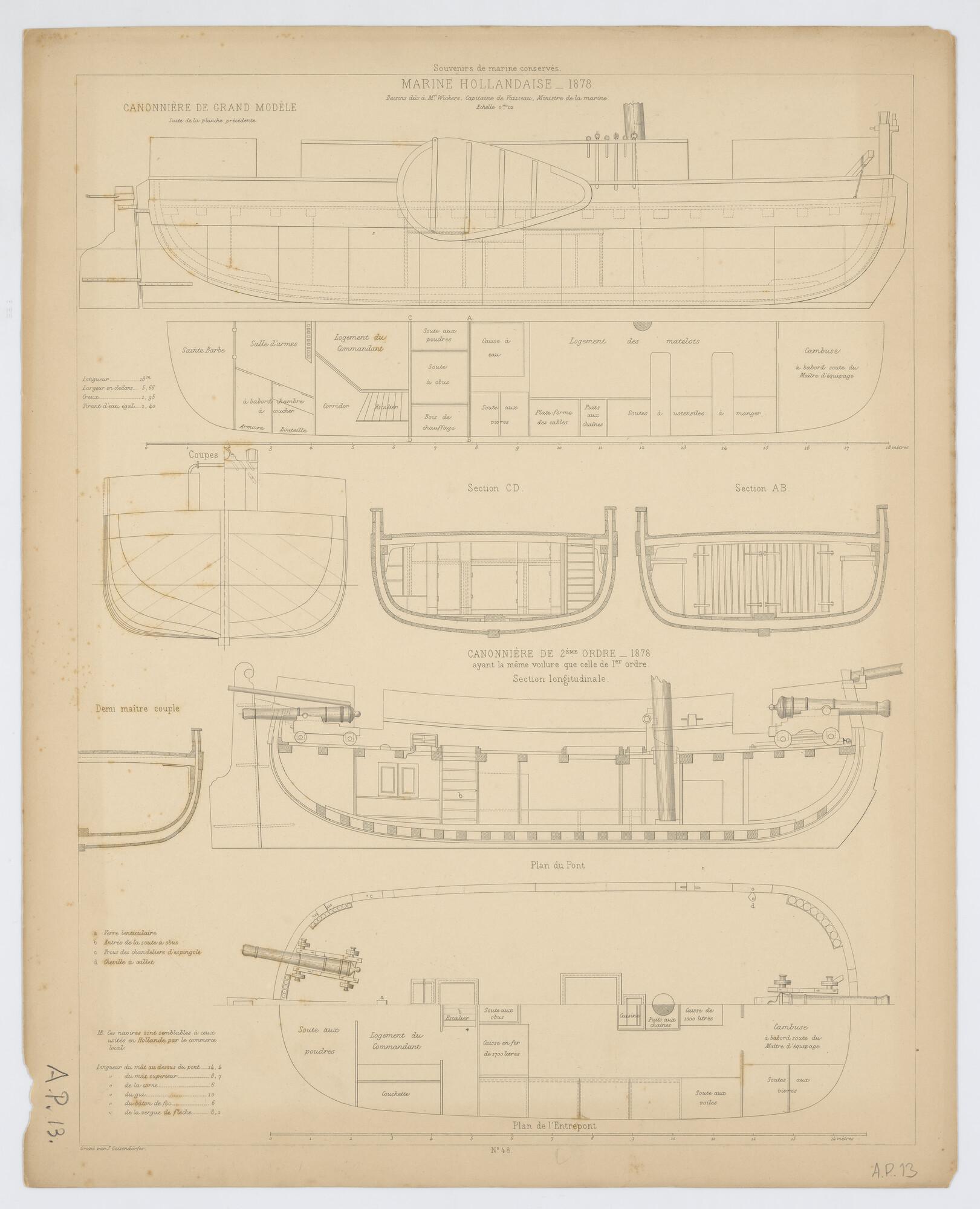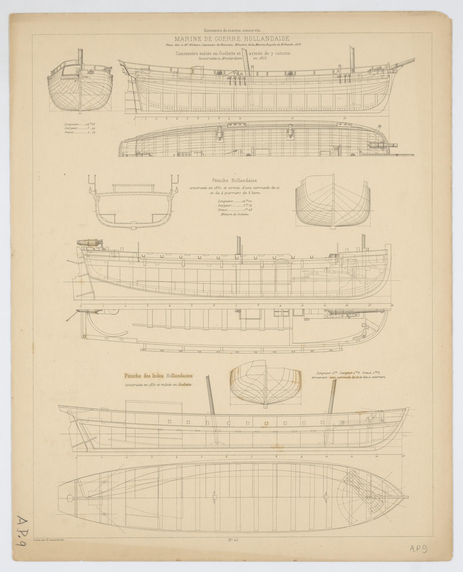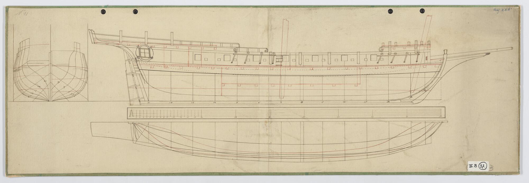 Lijnen- en constructieplan van een Deense kanonneerb...
