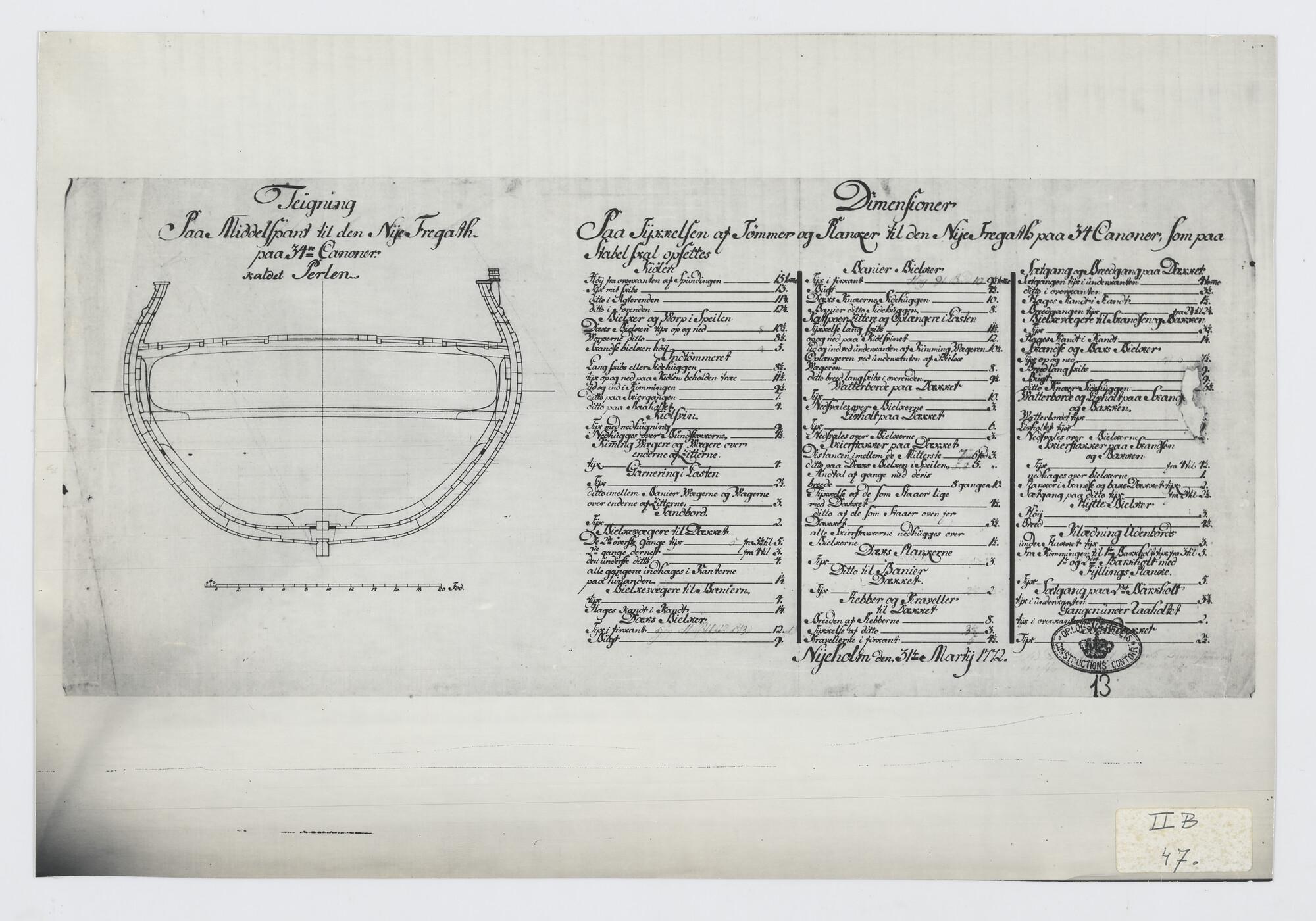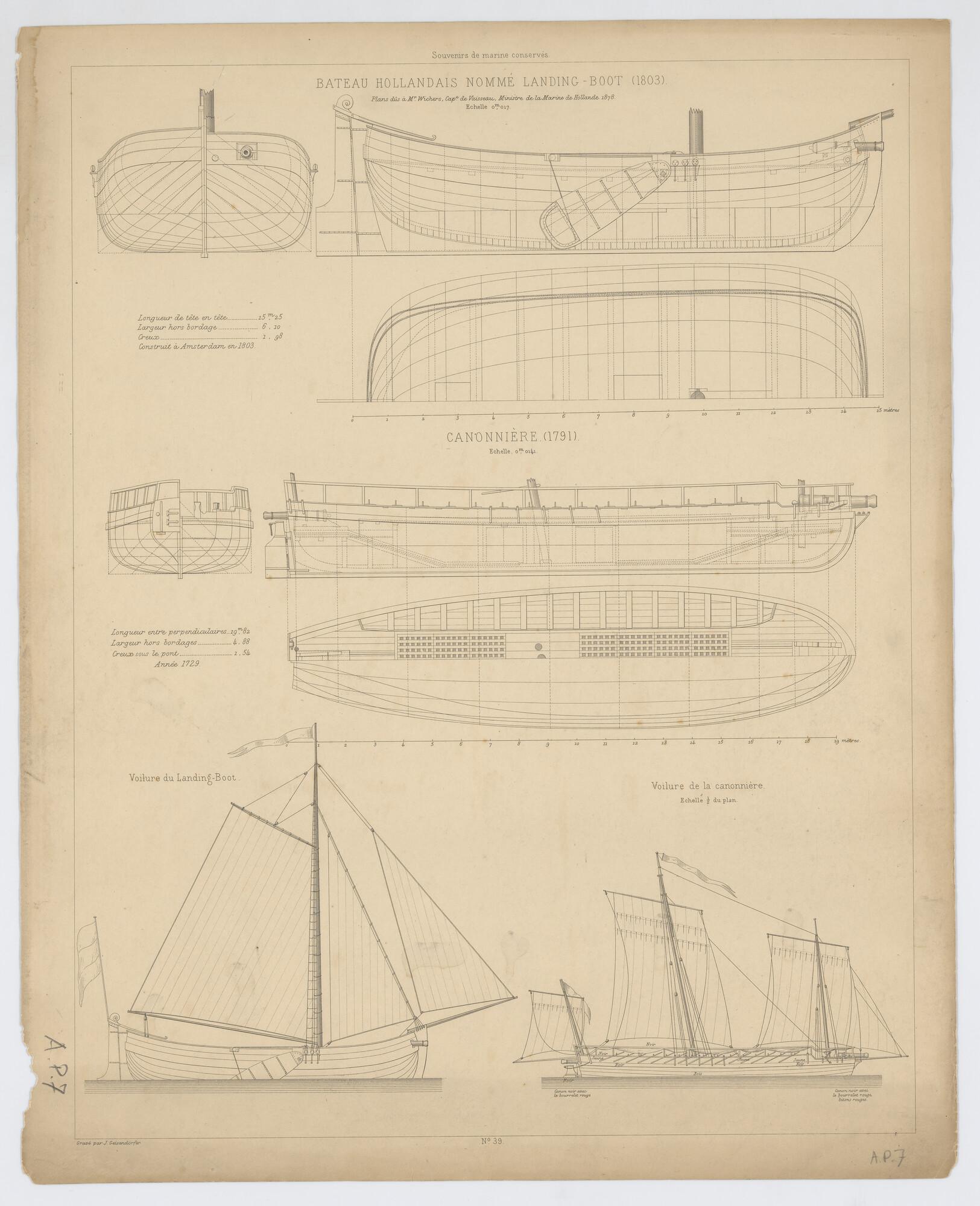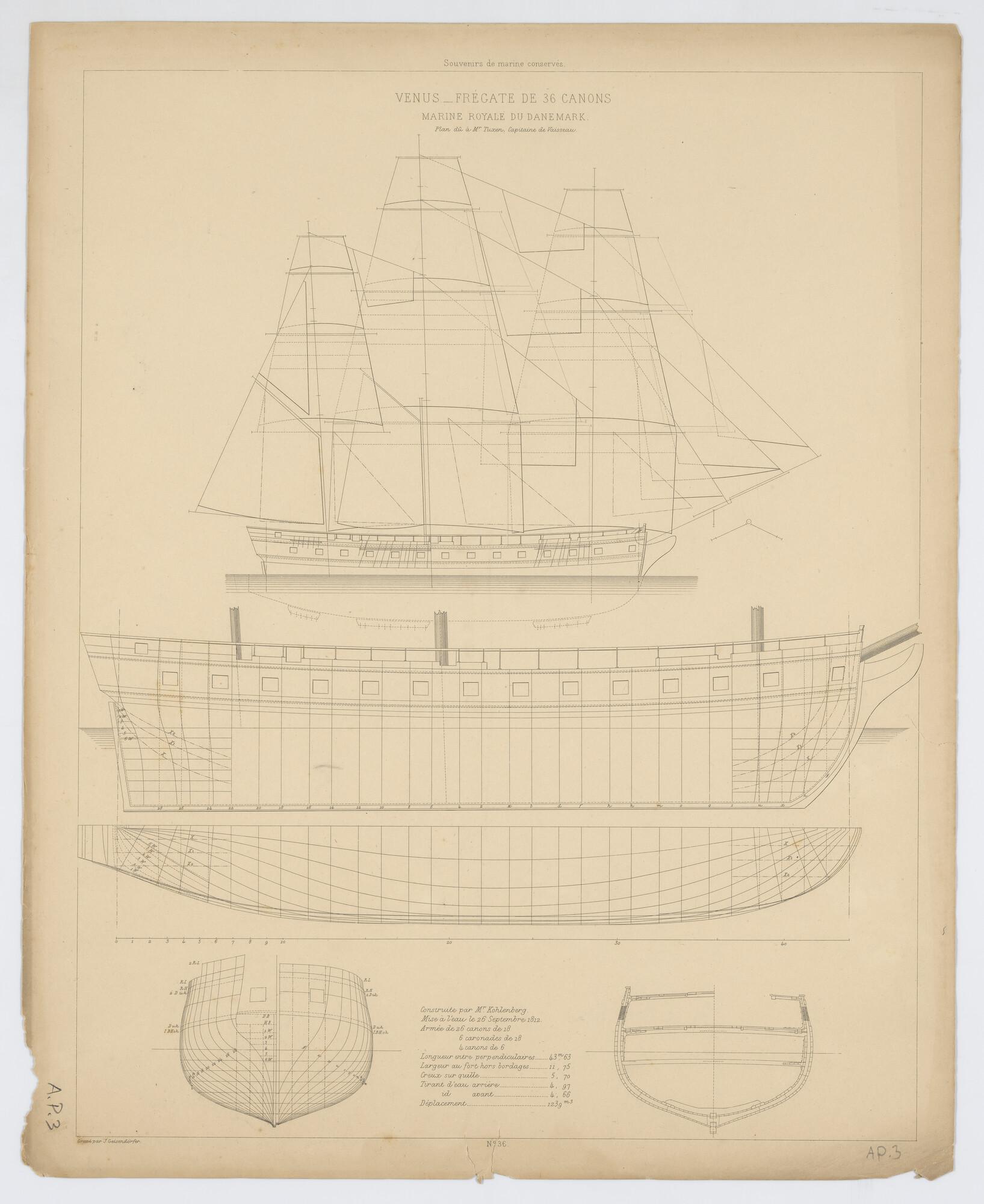 Lijnen- en constructieplan van een Deense kanonneerb...