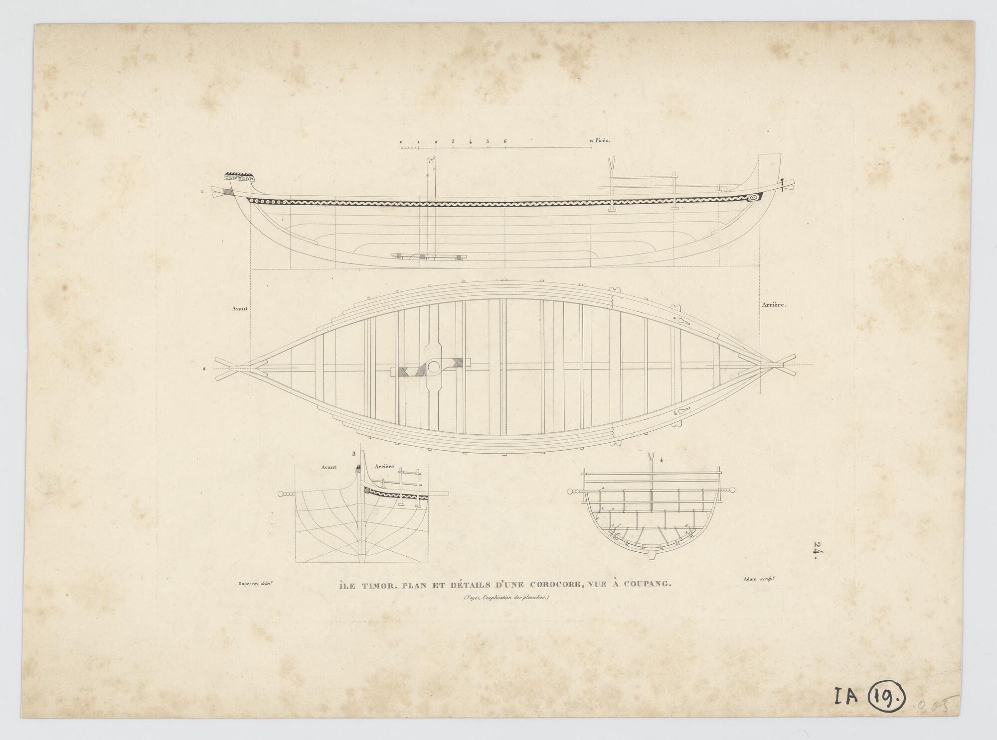 Reconstructietekeningen Corecore, vaartuig uit Rupan...