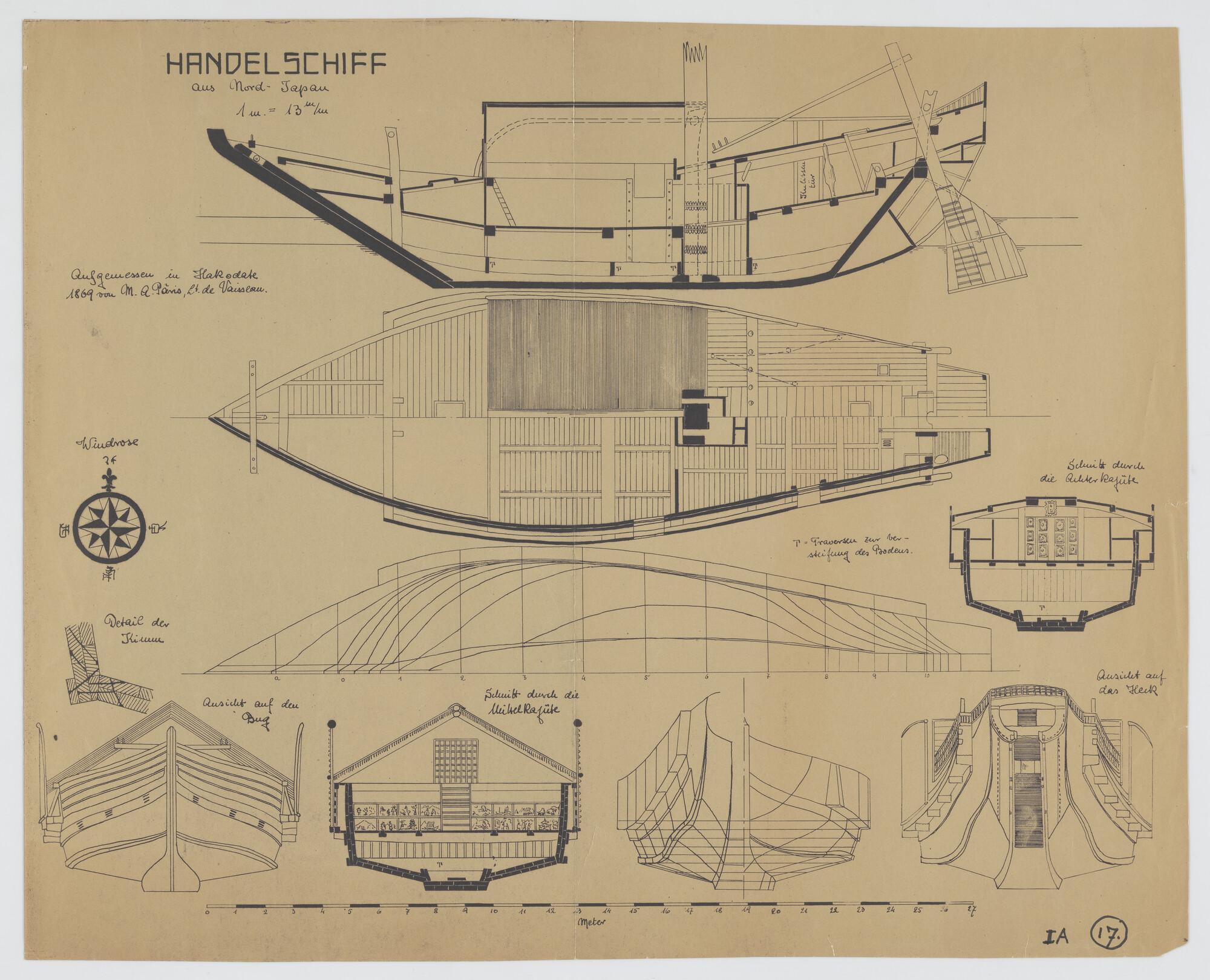 Reconstructietekeningen handelsschip uit Noord-Japan