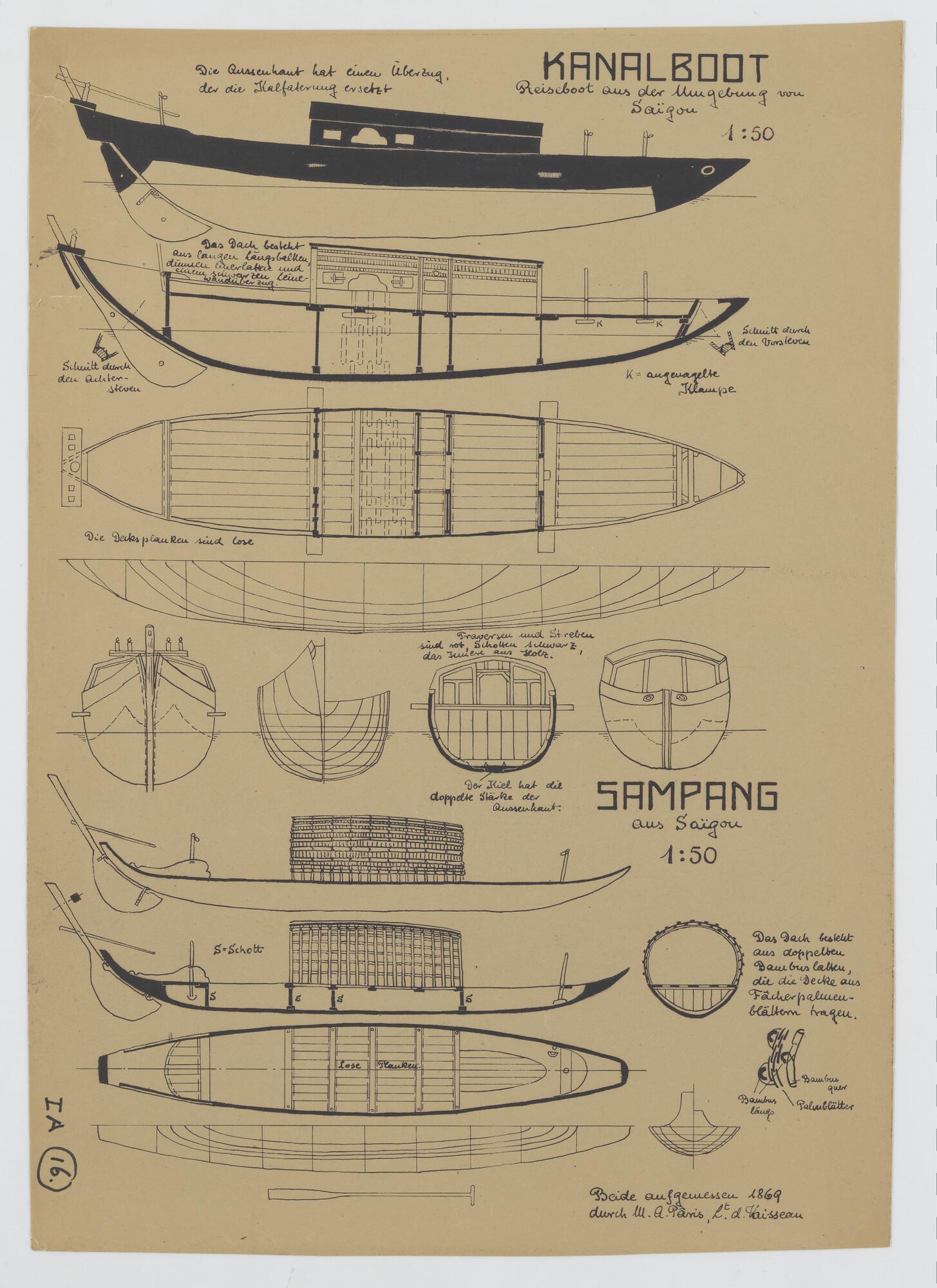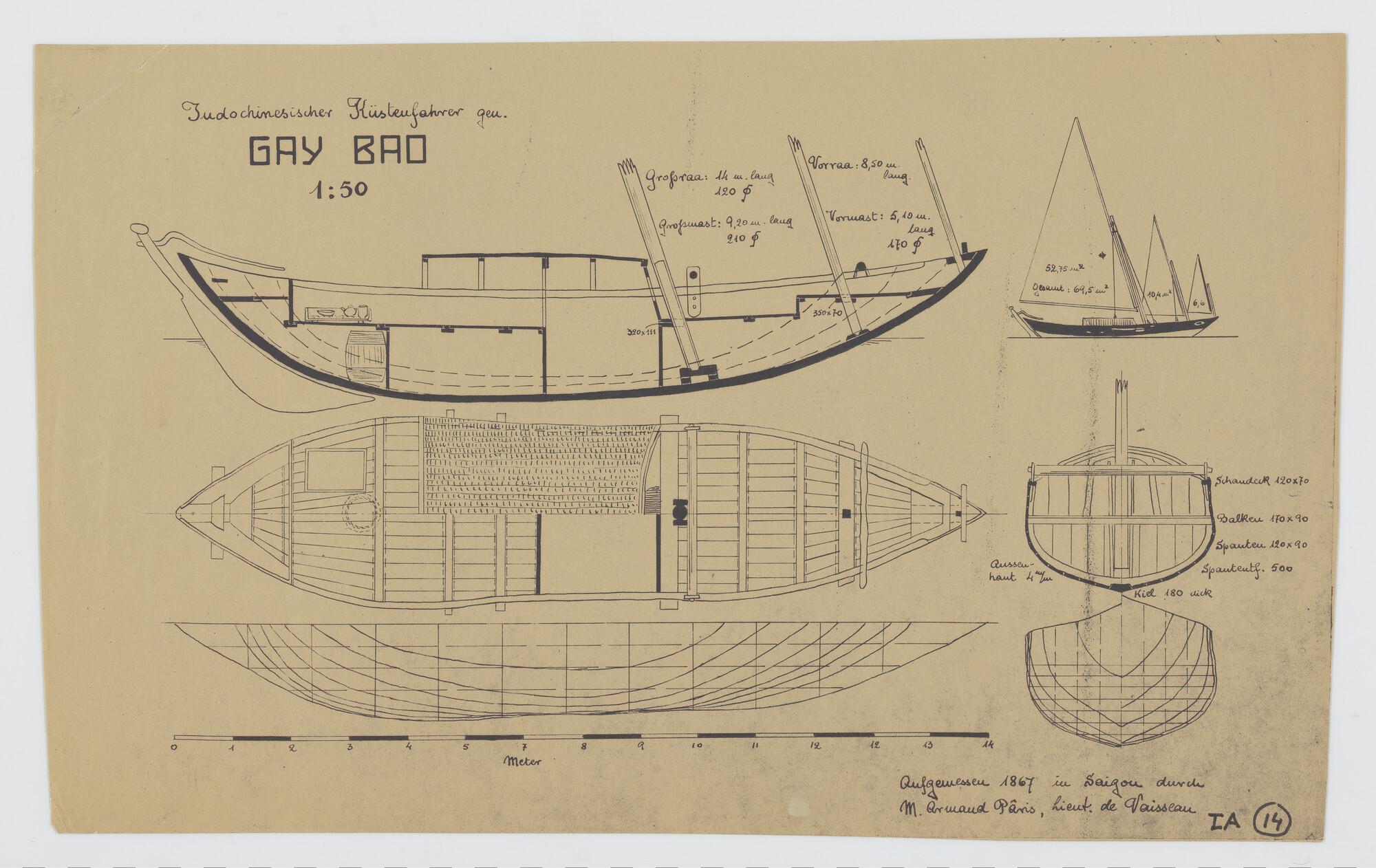 Reconstructietekeningen Caay Bao, zeilcoaster uit In...