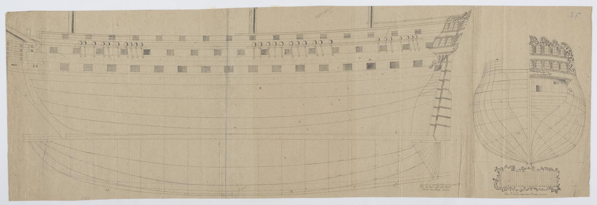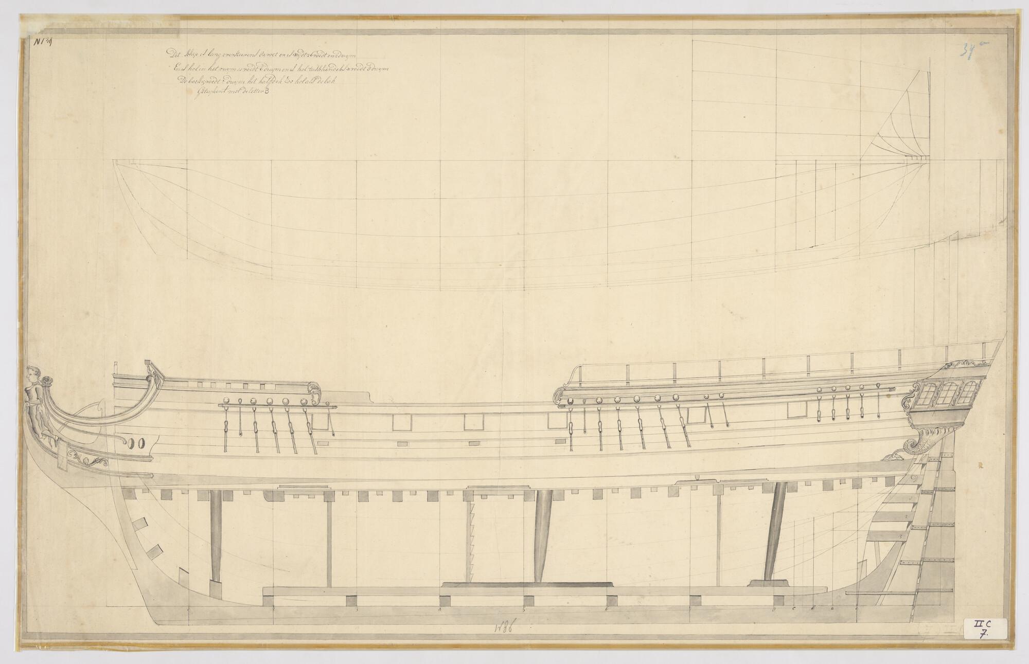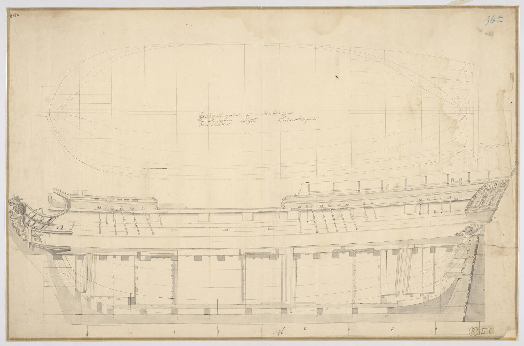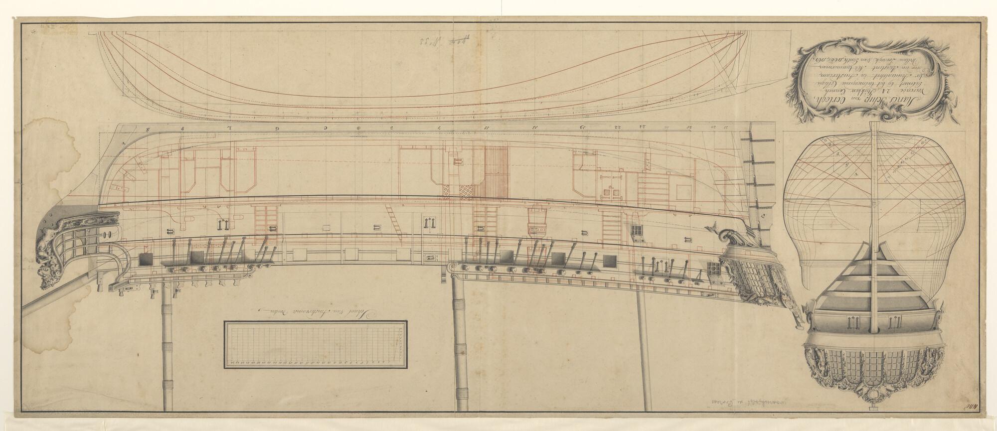 Lijnenplan van het linieschip De Hoop, 68 stukken